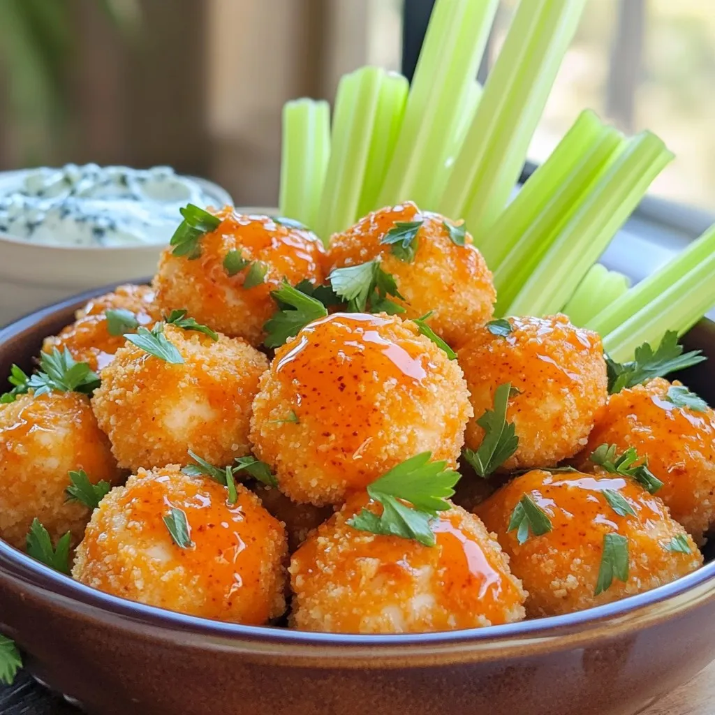 Pairing is key to a great meal. Serve your buffalo chicken bites with dips like ranch or blue cheese. The creamy dips balance the heat from the buffalo sauce. They also add extra flavor, making each bite even better. For side dishes, consider crunchy celery sticks or a fresh salad. These sides add freshness and crunch, making your meal feel complete.