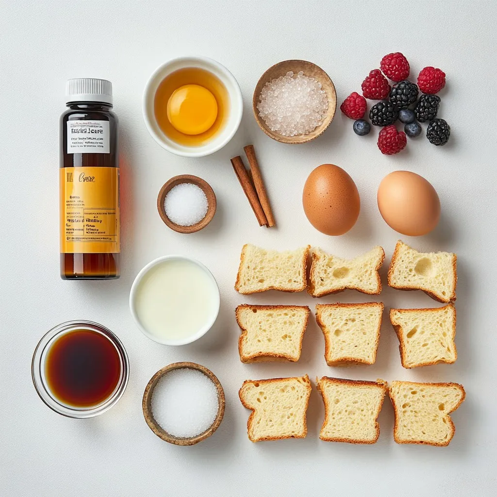 Use 4 slices of bread for a good base. You can pick brioche or challah. Both give a soft texture. The eggs help bind the mix together. A half cup of milk keeps it creamy. You can swap regular milk for almond milk if you want a dairy-free option. One teaspoon of vanilla adds nice flavor. Ground cinnamon gives warmth and spice. One tablespoon of sugar sweetens the mix. A pinch of salt balances the flavors. For cooking, use cooking spray or melted butter to keep it from sticking.