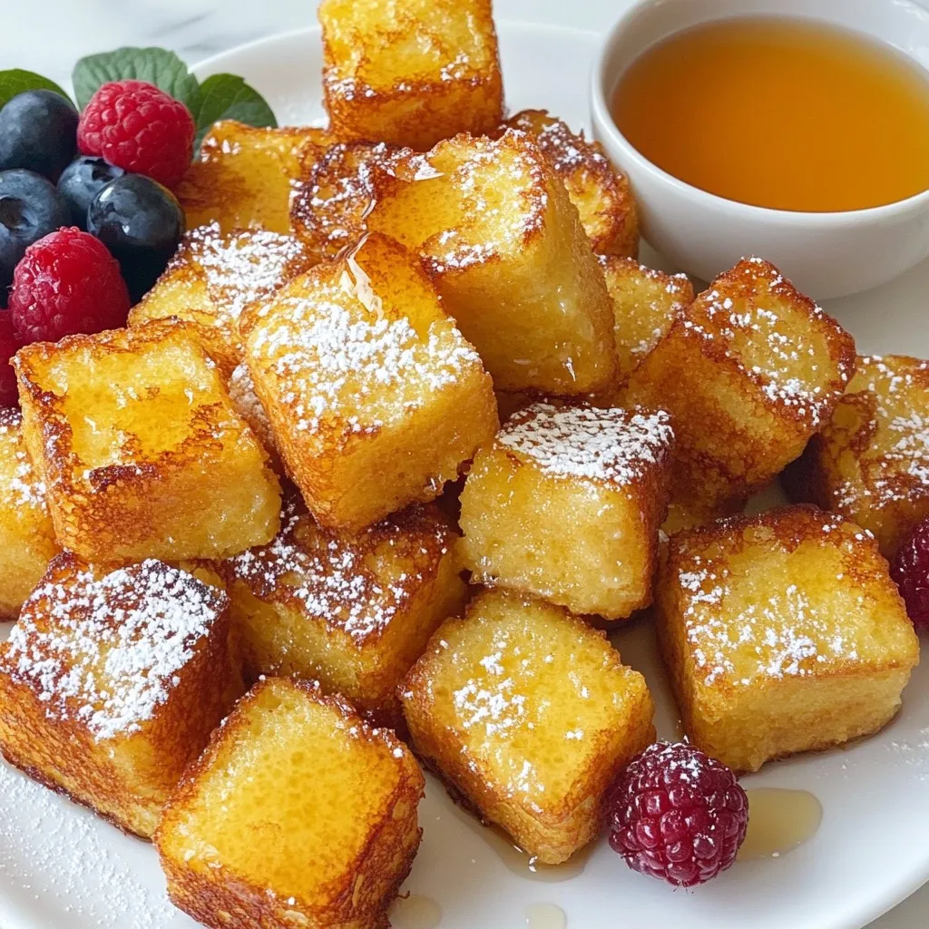 I love serving French toast bites with maple syrup for dipping. You can also sprinkle them with powdered sugar for a sweet touch. Fresh berries add a nice color and flavor too. Try serving them with a side of yogurt for a tasty twist. Enjoy them hot for the best taste!