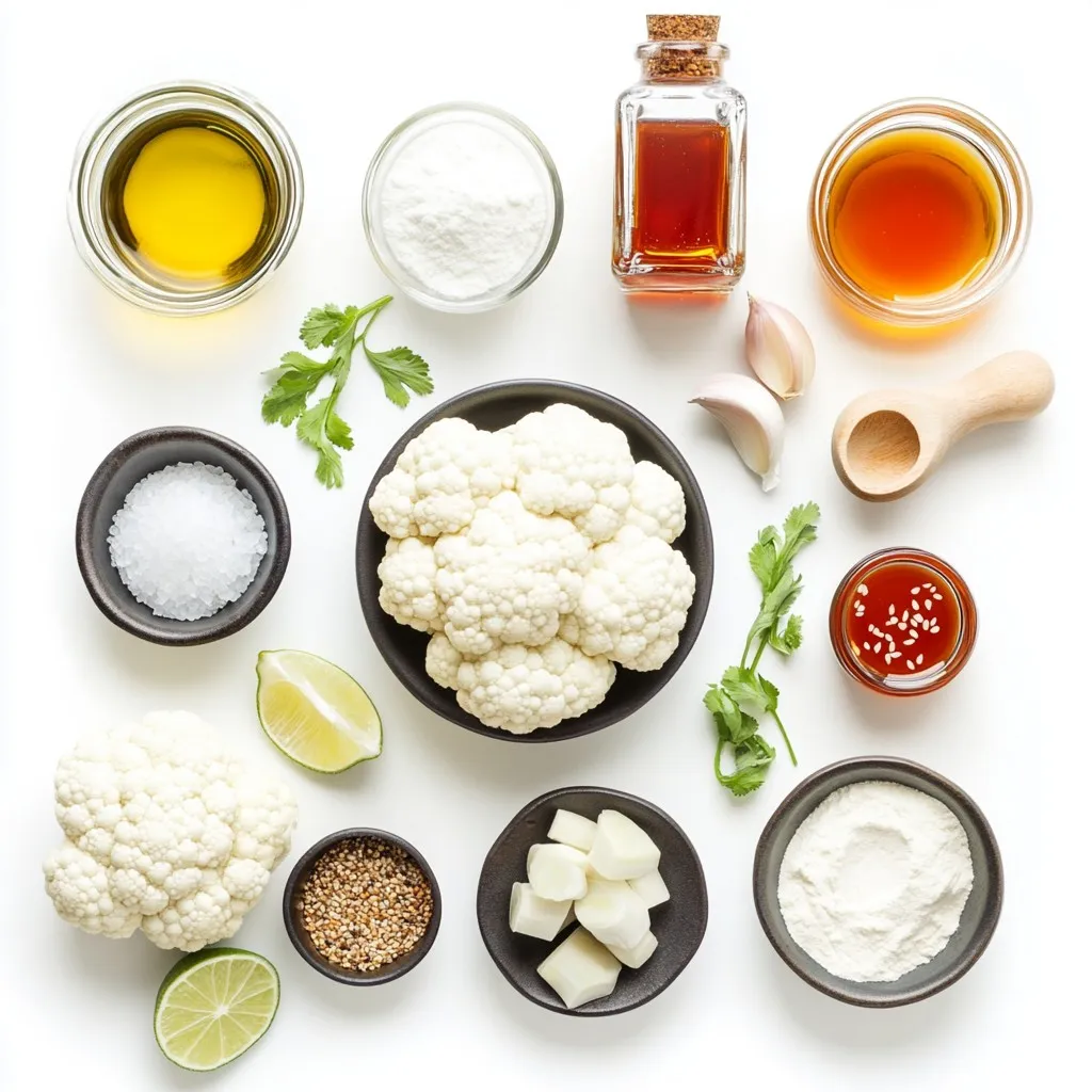 To start, we need fresh cauliflower. Choose a medium head, and break it into small florets. This helps them cook evenly. The flour and water form a batter, which gives the bites a crispy coat. Garlic and onion powder add flavor. Salt and black pepper enhance the taste. Finally, olive oil helps with crisping in the air fryer.