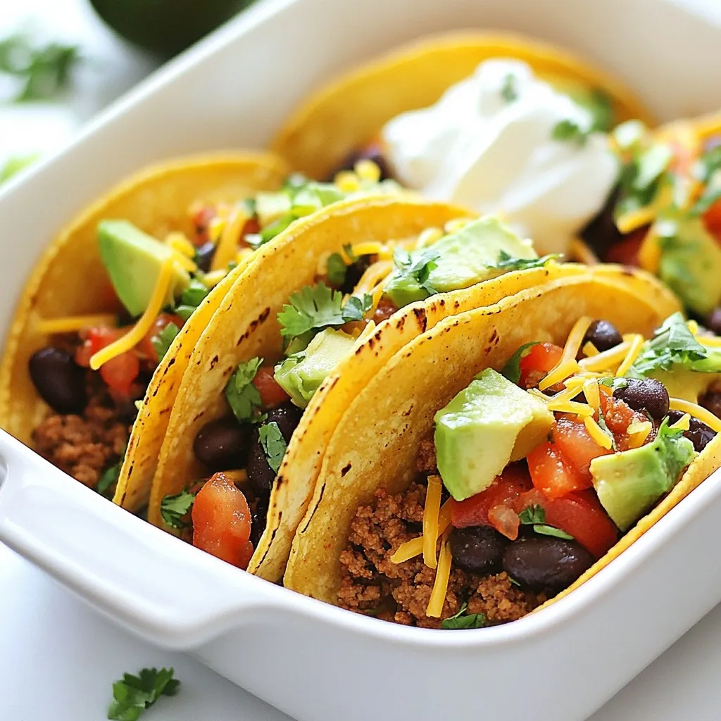 Crispy tortillas make a big difference. To achieve this, bake your tacos at the right temperature. Preheat your oven to 375°F (190°C). Arrange the tacos seam-side down in the dish. This helps them hold their shape. You can also lightly brush the tortillas with olive oil before baking. This adds crunch and flavor. Bake them until the cheese is melted and the edges are golden.