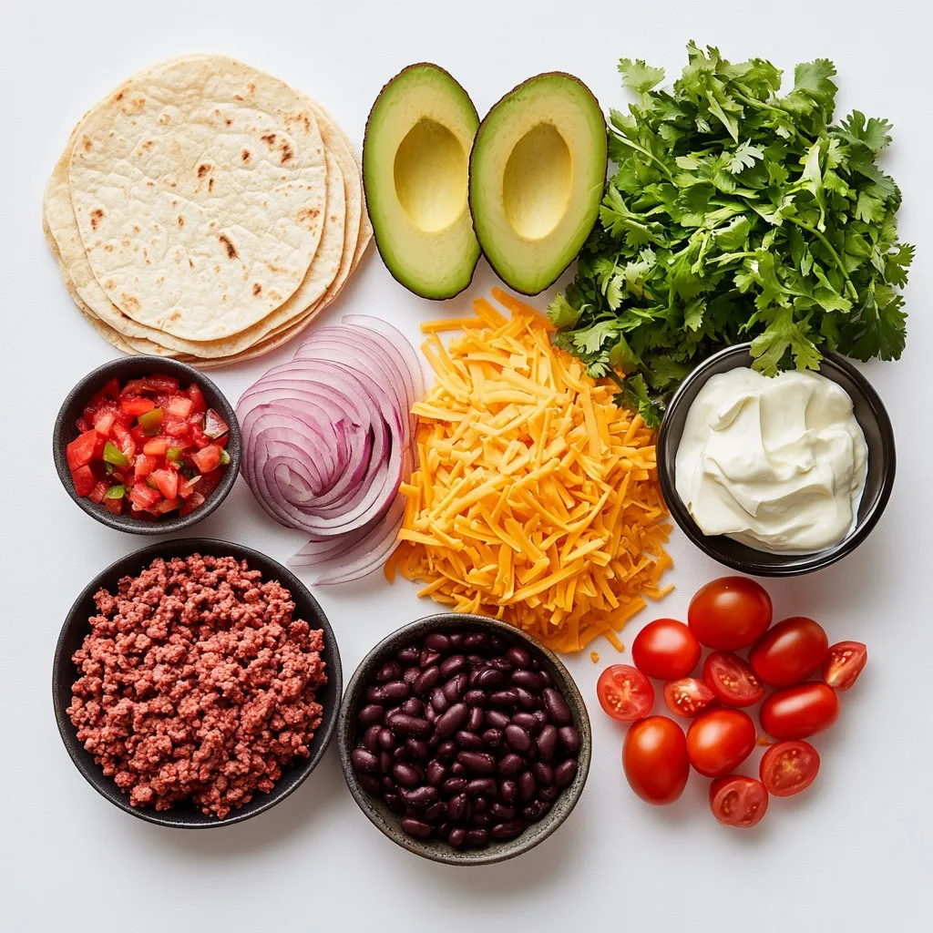 Toppings make your tacos fun and tasty. Prepare 1 cup of shredded lettuce and 1 cup of shredded cheese. Cheddar or a Mexican blend works great. You can also add ½ cup of sour cream for creaminess. Dice 1 avocado for a fresh taste. For a pop of color and flavor, add fresh cilantro as a garnish if you like.