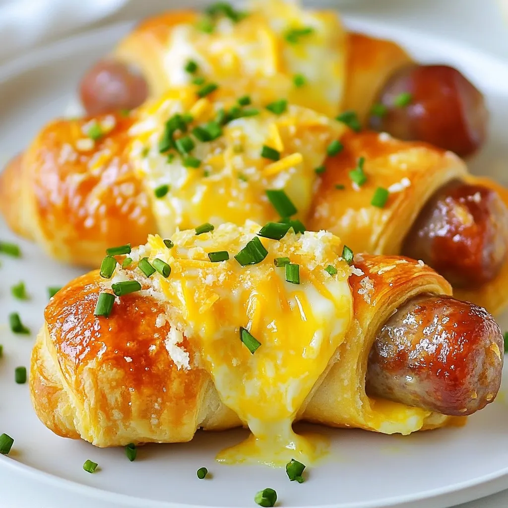 To make this dish healthier, consider using turkey sausages. They have less fat than pork sausages. You can also use whole wheat crescent dough for more fiber. Instead of cheddar, try low-fat cheese to cut calories. Adding vegetables like spinach or bell peppers boosts nutrition too. These small changes keep the recipe tasty without losing flavor!