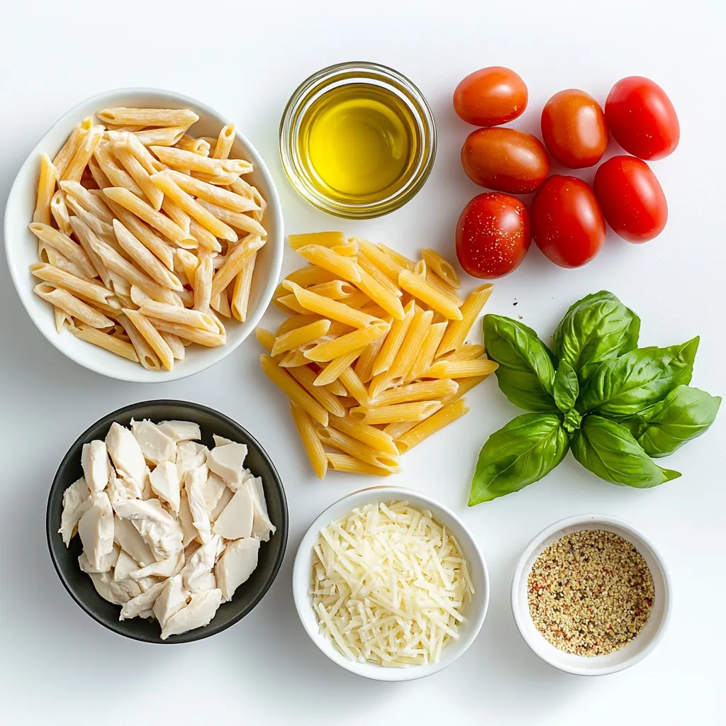 To start, you need good, sturdy penne pasta. It holds the sauce nicely. Next, grab a pound of chicken breast. Dice it into bite-sized pieces for easy cooking and eating. Lastly, add olive oil for sautéing. This will give your chicken a lovely flavor.