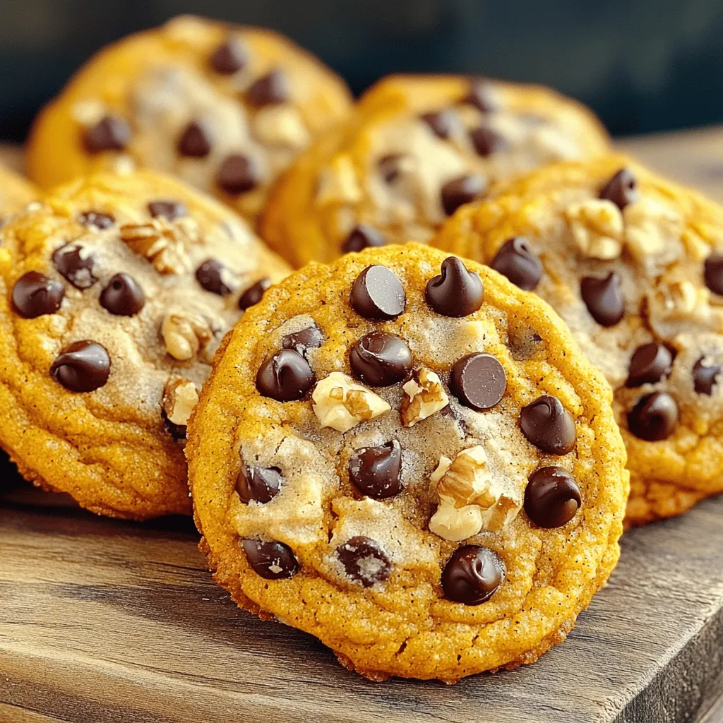 To make chewy pumpkin chocolate chip cookies, gather these ingredients: