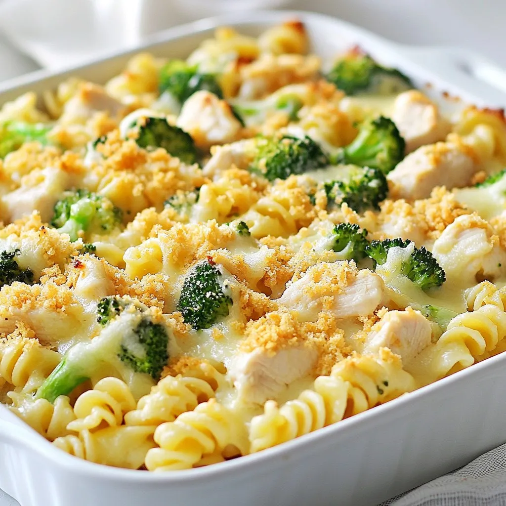 Choose fresh ingredients for the best taste. Use fresh broccoli florets instead of frozen ones. Fresh chicken breast should be boneless and skinless for easy cooking. For cheese, opt for high-quality mozzarella and Parmesan. These cheeses melt beautifully and enhance the flavor. If you want extra crunch, use fresh breadcrumbs instead of store-bought. They add texture and flavor to the top of the bake. Always taste as you go to ensure a balanced dish.