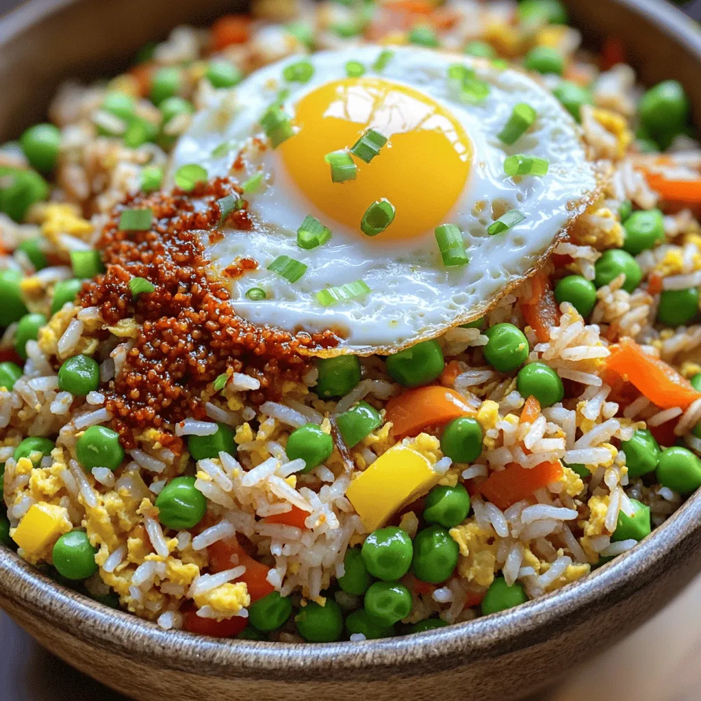 You can customize your fried rice with different vegetables. Use seasonal veggies for the best flavor. Try bell peppers in summer or squash in fall. Fresh spinach or kale can add a nice touch too. Just chop them up and add them while sautéing the garlic and onion.