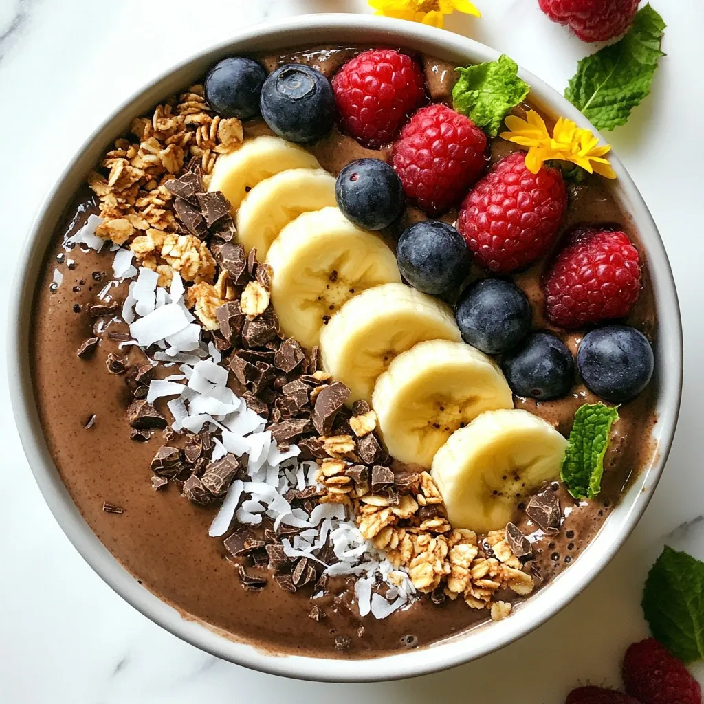 Ripe bananas are the base of this bowl. Freezing them makes the smoothie cold and creamy. Almond milk adds a nice, smooth texture. Cocoa powder gives it that rich chocolate flavor. Peanut butter brings in creaminess and a nutty taste. If you like it sweeter, add maple syrup. Vanilla extract rounds out the flavor.