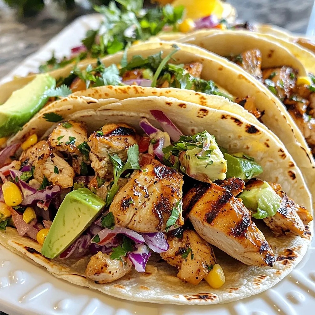 Take a tortilla and place a few strips of grilled chicken in the center. Top it with sliced avocado, shredded red cabbage, and diced red onion. If you like a kick, drizzle some hot sauce on top. Finish by adding extra cilantro for a fresh touch. Enjoy your flavorful cilantro lime chicken street tacos!