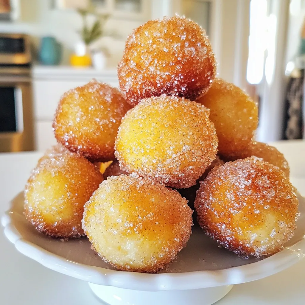 Yes, you can make these donut holes in advance. However, they taste best fresh. If you want to prep ahead, store uncoated donut holes in an airtight container. Keep them in the fridge for up to two days. You can also freeze them for longer storage. Just remember to coat them with cinnamon sugar when you are ready to serve.