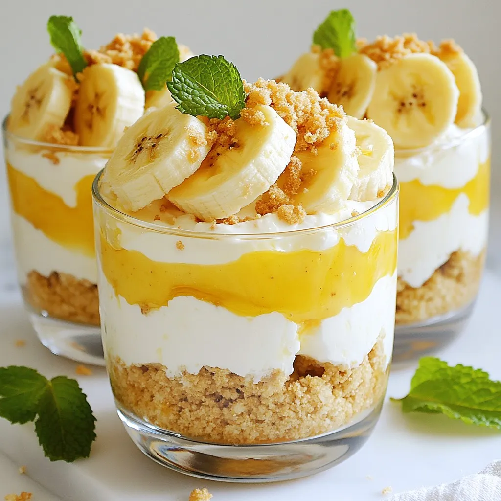 - 2 cups cottage cheese - 2 ripe bananas, sliced - 1/4 cup honey or maple syrup - 1 teaspoon vanilla extract - 1/4 teaspoon cinnamon - 1/2 teaspoon lemon juice - 1/4 cup crushed graham crackers (for topping) - Fresh mint leaves (for garnish) When I make Cottage Cheese Banana Pudding, I love how simple the ingredients are. You only need a few items. Cottage cheese gives this dessert a creamy base. Ripe bananas add natural sweetness and flavor. Honey or maple syrup is your choice for extra sweetness. Vanilla extract boosts flavor, while cinnamon adds warmth. Lemon juice keeps things fresh. Finally, crushed graham crackers give a nice crunch, and mint leaves make it look pretty. - Alternative sweeteners: You can use agave nectar or coconut sugar instead of honey or maple syrup. - Dairy-free options: Try using almond or soy yogurt as a base if you avoid dairy. - Different toppings: Swap graham crackers for crushed nuts or granola for a new texture. You can change up these ingredients to fit your taste. Sweeteners can vary, and dairy-free options make this recipe friendly for many diets. Different toppings can add fun textures and flavors too. - Caloric breakdown: Each serving has about 200 calories. - Macronutrients per serving: Roughly 10g of protein, 8g of fat, and 25g of carbs. Knowing the nutrition facts helps you enjoy this treat guilt-free. It packs protein from cottage cheese, which is great for energy. The bananas and sweeteners give you carbs, making it a filling snack. {{ingredient_image_1}} Mixing the cottage cheese base First, grab a large mixing bowl. Add 2 cups of cottage cheese. Next, pour in 1/4 cup of honey or maple syrup for sweetness. Toss in 1 teaspoon of vanilla extract, 1/4 teaspoon of cinnamon, and 1/2 teaspoon of lemon juice. Mix these together with a hand mixer or whisk. Blend until it is smooth and creamy. This base is the heart of our pudding. Layering the pudding Now, we start layering. Take your serving glasses or bowls. Spoon 1/4 of the cottage cheese mixture into each glass. This layer is rich and creamy. Next, add a layer of sliced bananas on top. Use the 2 ripe bananas, sliced thin. Repeat these layers until your glasses are nearly full. End with a last layer of the cottage cheese mixture. How to layer in serving glasses When layering, make sure to spread each layer evenly. This creates a beautiful look. As you build, the colors and textures will shine through the clear glass. It looks great and tastes even better. Final steps before chilling Once you finish layering, sprinkle crushed graham crackers on top. This adds crunch and flavor. Finally, add fresh mint leaves for a pop of color. They also bring a fresh taste to each bite. Importance of chilling Chilling is key for flavor. It helps the ingredients meld together. The cottage cheese base absorbs the banana flavor. This makes every spoonful delightful. Recommended time for best flavor Chill the pudding in the fridge for at least 30 minutes. For even better taste, you can chill it longer. This allows the flavors to deepen and enhances your treat. Enjoy your Cottage Cheese Banana Pudding! To ensure your pudding is creamy, blend the cottage cheese well. I use a hand mixer for a smooth blend. If you don’t have one, a whisk works too, but it takes more work. Mix until the cottage cheese has no lumps. This step is key for a delightful texture. Mixing techniques also matter. Start with the honey and vanilla before adding the cottage cheese. This helps the flavors blend nicely. Then, add cinnamon and lemon juice. These ingredients elevate the taste. Presentation is important for this treat. I love to serve it in clear glasses. This way, you can see the pretty layers. Layering looks beautiful and makes it fun to eat. For extra flair, I add a banana slice or a mint leaf on top. These small touches make it pop visually. You can also sprinkle extra crushed graham crackers on top for added crunch. Preparing this pudding in advance is easy. You can mix the cottage cheese base a day before. Just store it in the fridge until you are ready to serve. Chill the assembled pudding for at least 30 minutes before serving. This time allows the flavors to blend well. Store it in covered containers to keep it fresh. Pro Tips Use Fully Ripe Bananas: The riper the bananas, the sweeter and more flavorful your pudding will be. Look for bananas with plenty of brown spots for the best taste. Chill for Best Flavor: Allowing the pudding to chill for at least 30 minutes helps the flavors meld together, enhancing the overall taste. Experiment with Sweeteners: Feel free to substitute honey with agave syrup, or use a sugar alternative to suit your dietary preferences. Garnish Creatively: In addition to mint leaves, consider adding a sprinkle of cocoa powder or chocolate shavings for an extra touch of flavor and presentation. {{image_2}} You can easily add fun flavors to your cottage cheese banana pudding. Try mixing in a scoop of peanut butter for a nutty taste. If you love chocolate, add cocoa powder or chocolate syrup. You can also experiment with different fruits. Strawberries or blueberries work great in this recipe. They add color and flavor, making each bite exciting. For those on a keto diet, swap honey for a low-carb sweetener like erythritol or stevia. This keeps the pudding sweet without extra carbs. If you want a vegan version, use a plant-based cottage cheese made from nuts or tofu. You can also use maple syrup instead of honey. This way, everyone can enjoy this tasty pudding. If you have a large group, you may want to make more pudding. Just double the recipe and use a big bowl for serving. This makes it easy for guests to help themselves. For individual servings, use small cups or jars. This makes each dessert feel special. You can also layer the pudding ahead of time for a fun presentation. To keep your cottage cheese banana pudding fresh, store it in the fridge. Use airtight containers to prevent it from drying out. Glass co