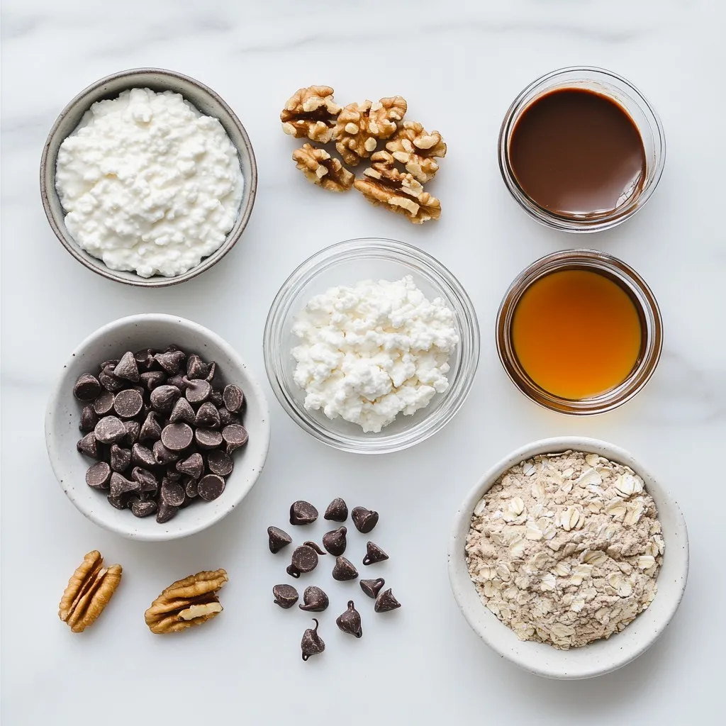 To make delicious cottage cheese protein brownies, you’ll need simple yet nutritious ingredients. Here’s what you will need: - 1 cup cottage cheese - 1/2 cup almond butter - 1/4 cup maple syrup - 1/4 cup unsweetened cocoa powder - 1/2 cup oats (blended into flour) - 1/2 tsp baking powder - 1/4 tsp salt - 1/2 cup dark chocolate chips (or dairy-free for a vegan option) - Optional: 1/4 cup chopped nuts (walnuts or pecans) Each ingredient plays a key role in creating tasty brownies. The cottage cheese adds protein and moisture. Almond butter gives richness and a nutty taste. Maple syrup sweetens without refined sugar. Cocoa powder provides a deep chocolate flavor. Blended oats act as the flour base. Baking powder helps the brownies rise, while salt enhances all the flavors. Dark chocolate chips add sweetness and a chocolatey burst. If you love nuts, adding them gives extra crunch and nutrition. Using these ingredients, you can whip up a batch of brownies that are not only yummy but also packed with good stuff. Enjoy your baking! {{ingredient_image_1}} 1. Preheat your oven and prepare the baking pan. Set your oven to 350°F (175°C). Grease an 8x8 inch baking pan or line it with parchment paper. This makes for easy removal later. 2. Mix the wet ingredients with cottage cheese. In a mixing bowl, combine 1 cup of cottage cheese, 1/2 cup of almond butter, and 1/4 cup of maple syrup. Blend these until smooth and creamy. You can use a hand mixer or a food processor for this step. 3. Combine the dry ingredients thoroughly. In another bowl, whisk together 1/2 cup of blended oats (oat flour), 1/4 cup of unsweetened cocoa powder, 1/2 teaspoon of baking powder, and 1/4 teaspoon of salt. Make sure everything is mixed well. 1. Gradually mix dry ingredients into wet ingredients. Slowly add the dry mix to the wet mixture. Stir until everything is fully combined. This creates a rich, thick batter. 2. Pour and smooth the batter. Pour the brownie batter into the prepared pan. Use a spatula to smooth it out evenly. This ensures all parts bake well. 3. Baking time and checking for doneness. Place the pan in the preheated oven. Bake for 20-25 minutes. Check if a toothpick inserted in the center comes out mostly clean. A few crumbs are fine. 1. Cool the brownies before cutting. Once baked, remove the pan from the oven. Let the brownies cool in the pan for at least 15 minutes. This helps them firm up for easier cutting. 2. Recommended serving suggestions. For a tasty treat, serve the brownies warm. Top them with a dollop of Greek yogurt or a scoop of your favorite ice cream. A sprinkle of cocoa dust or nuts adds a nice touch too! For great brownies, blend the cottage cheese well. This helps create a smooth texture. If you don’t blend it well, the brownies may have lumps. Use a hand mixer or food processor for the best results. You can also adjust the sweetness with maple syrup. If you prefer a sweeter brownie, add a bit more syrup. Just remember, too much can make them too wet. Want to make your brownies special? Add nuts or different types of chocolate. Chopped walnuts or pecans can bring a nice crunch. You might enjoy using dark chocolate chips, or even white chocolate for a twist. Don't be afraid to get creative! Try adding fruits like bananas or apples. You can also mix in spices like cinnamon or vanilla for extra flavor. Presentation matters. Serve your brownies warm for the best flavor. Top them with a dollop of Greek yogurt or a scoop of your favorite ice cream. This adds creaminess and balance to the rich brownie. For a finishing touch, sprinkle some cocoa powder or chopped nuts on top. This not only looks nice but also adds texture. Pro Tips Use Fresh Cottage Cheese: For the best flavor and texture, opt for fresh cottage cheese. It will make your brownies creamier! Blend Oats Well: Ensure your oats are finely blended into flour for a smoother brownie texture. This helps to avoid any graininess. Check for Doneness: Insert a toothpick into the center of the brownies; it should come out with a few moist crumbs but not wet batter for perfect fudginess. Add Flavor Variations: Experiment with different add-ins such as vanilla extract or a pinch of cinnamon to enhance the flavor profile of your brownies. {{image_2}} You can make these brownies fit different diets. For a vegan option, swap in dairy-free chocolate chips. This simple change keeps the flavor rich without dairy. If you need gluten-free treats, use certified gluten-free oats. These oats will still give you the right texture without any gluten. Let your creativity shine with different nut butters. Almond butter adds a nice, nutty taste. You can also try peanut butter for a classic twist. If you want a fruity touch, try adding fruit purees. Applesauce or banana puree can add sweetness and moisture. This not only enhances flavor but also makes the brownies extra soft. To boost protein, consider adding protein powders. A scoop of vanilla or chocolate protein powder works well. You can also adjust sweetness by using alternative sweeteners. Stevia or monk fruit can lower sugar content while keeping it sweet. These add-ins make the brownies even better for you! To keep your brownies fresh, use an airtight container. Glass or plastic containers work great. Line your container with parchment paper to prevent sticking. If you want to keep them moist, place a slice of bread in the container. The bread will absorb excess moisture. Want to save brownies for later? You can freeze them! First, let the brownies cool completely. Cut them into squares, then wrap each square in plastic wrap. Place the wrapped brownies in a freezer bag or container. When you want to eat them, just take them out and let them thaw in the fridge. For the best texture, eat them within a month. At room temperature, these brownies stay fresh for about 3 to 4 days. Store them in a cool, dry place. If you see any mold, toss them out. If they have a strange smell or dry out, it's best to ge
