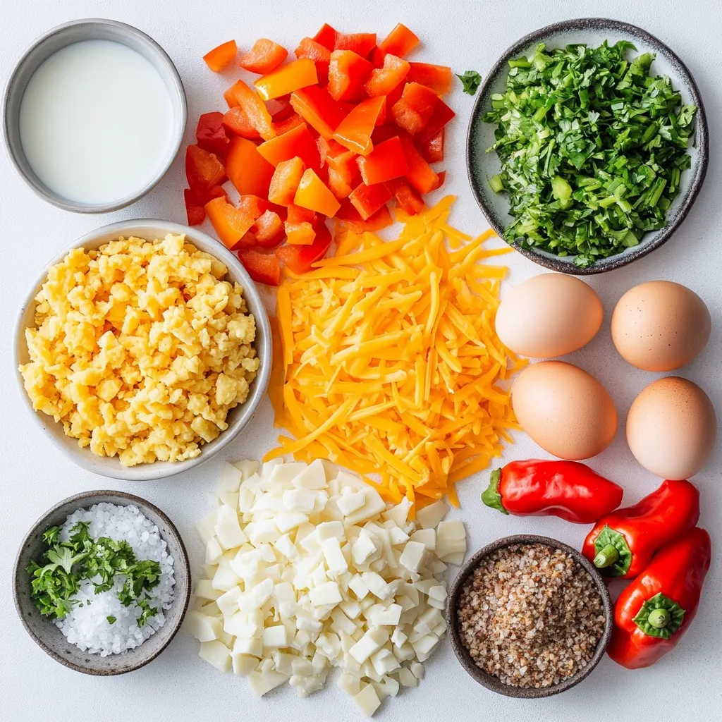 This breakfast casserole shines with simple, tasty ingredients. You start with eight large eggs and a cup of milk. These two create a rich base. Next, you need two cups of thawed frozen hash browns. They give the dish its hearty feel.