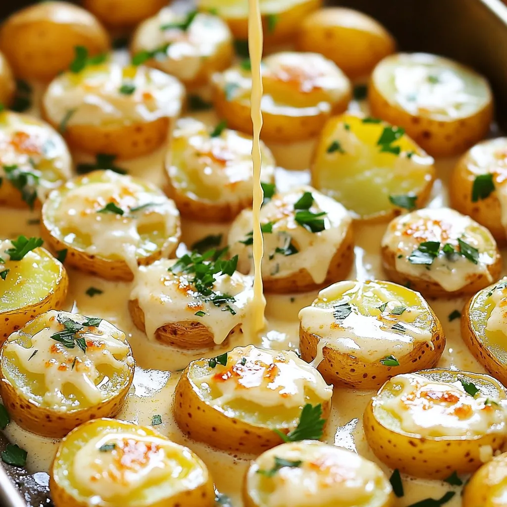 You need fresh baby potatoes for this dish. They stay firm and have great flavor. Heavy cream gives it a rich taste. Grated Parmesan cheese adds a salty, nutty kick. Minced garlic brings a bold aroma and taste. Dried thyme and rosemary add depth. Salt and pepper balance the flavors. Butter adds creaminess, while parsley makes it pretty. Each ingredient works together to create a delightful meal that comforts and satisfies.