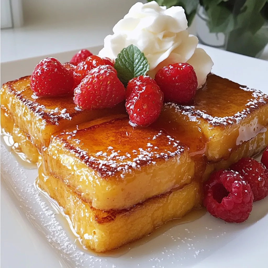 Presentation matters! Serve your French toast warm with fresh berries. Strawberries, blueberries, or raspberries look beautiful and add flavor. A dollop of whipped cream makes it even better. For a gourmet touch, drizzle some maple syrup or honey. A mint leaf on top adds a pop of color, too!