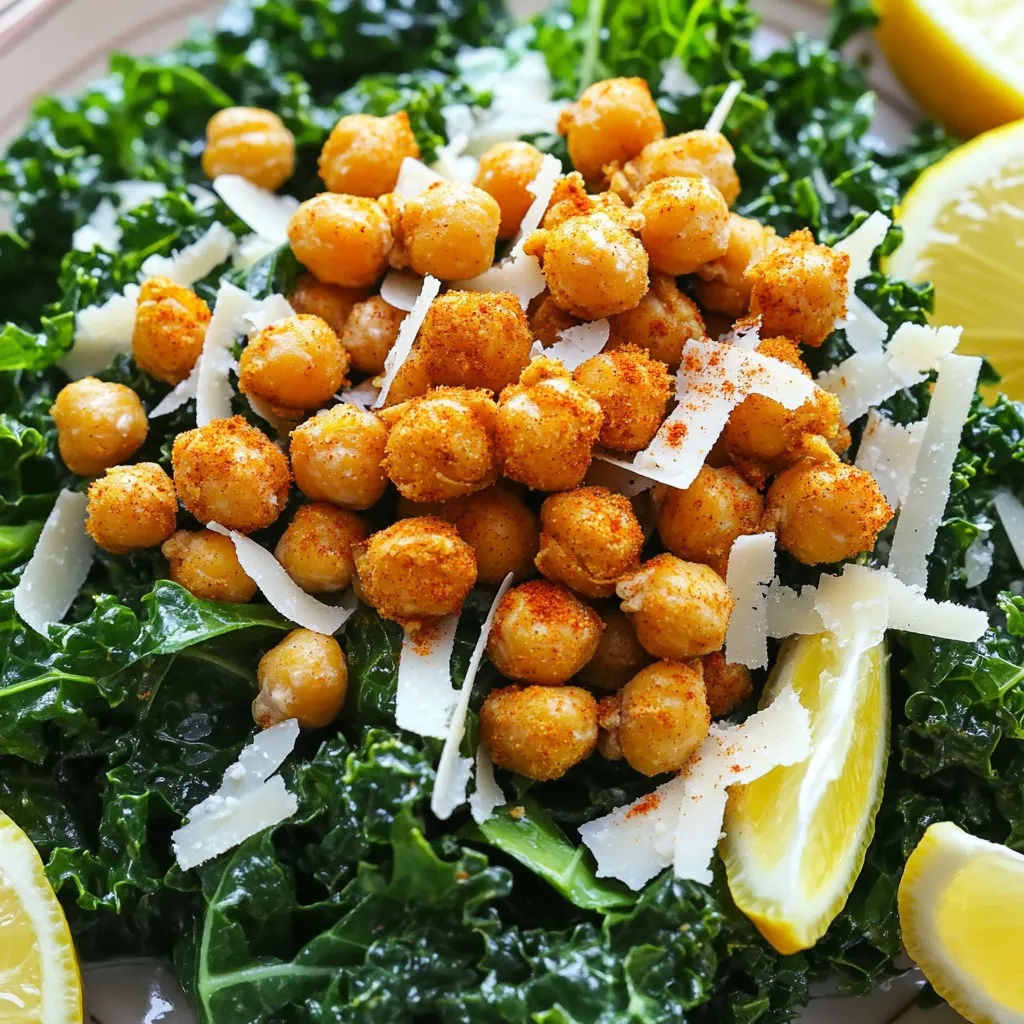 In a large mixing bowl, combine the massaged kale with the crispy chickpeas. Add grated Parmesan cheese or nutritional yeast if you prefer a vegan option. Pour in the Caesar dressing. Toss everything gently to coat all the ingredients. If you like croutons, add them just before serving. Serve the salad right away on plates or a big platter.