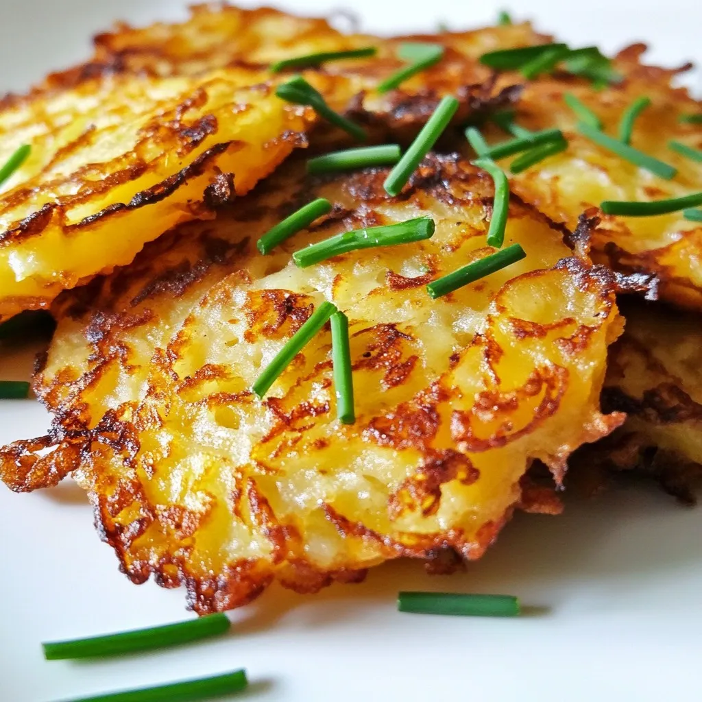 - 4 medium russet potatoes - 1 small onion (grated) - 2 tablespoons all-purpose flour - 1 teaspoon garlic powder - 1 teaspoon onion powder - Salt and pepper to taste - 1/4 cup olive or vegetable oil (for frying) - Fresh chives or parsley (for garnish) To make crispy hash browns, start with russet potatoes. They have the right starch to give you a great texture. Grating the potatoes helps them cook evenly. You also need a small onion for flavor. Grate it finely so it mixes well. Next, you'll need flour to bind the mixture. Garlic powder and onion powder add depth to the taste. Season with salt and pepper to your liking. For frying, choose olive oil or vegetable oil. Both help achieve that perfect golden color. Finally, don’t forget fresh chives or parsley for garnish. They add a nice touch and flavor when serving. {{ingredient_image_1}} To start, peel the russet potatoes. After peeling, slice them into quarters. Rinsing is next. Rinse the potatoes under cold water. This step helps remove excess starch. Removing starch is key for crispiness. Now, let's grate the potatoes. You can use a box grater or a food processor. Both methods work well. If you use a box grater, be careful with your fingers. If using a food processor, just pulse until grated. In a mixing bowl, combine the grated potatoes with the grated onion. Add the all-purpose flour, garlic powder, onion powder, salt, and pepper. Mix everything well. This blend adds great flavor. Moisture removal is a must. Take the grated potato mix and place it in a clean kitchen towel. Squeeze out as much moisture as you can. This step helps the hash browns turn out crispy. Heat olive oil in a large skillet. Make sure the oil covers the bottom well. A medium-high heat works best. Once the oil is hot, take a handful of the potato mix. Shape it into a patty and place it in the skillet. Do not overcrowd the pan. Fry in batches if needed. Cook for about 4-5 minutes on one side. Look for a golden brown color before flipping. Use a spatula to turn them carefully. Cook for another 4-5 minutes on the other side. After cooking, transfer the hash browns to a paper towel-lined plate. This helps absorb extra oil. Repeat with the rest of the potato mix. Now, enjoy your crispy, golden hash browns! To make your hash browns super crispy, you must remove moisture. After grating your potatoes, place them in a clean towel. Squeeze the towel tightly to get out as much water as possible. This step is key for crispiness. The oil temperature matters too. Heat your skillet over medium-high heat. Add enough oil to cover the pan. You want the oil hot but not smoking. If the oil is too cool, the hash browns will absorb it and become soggy. Getting the right seasoning is vital for tasty hash browns. A good starting point is one teaspoon of salt and half a teaspoon of pepper. Adjust this based on your taste. You can also play with spices. Adding garlic powder and onion powder gives great flavor. Try paprika or cayenne for a kick. Fresh herbs like chives or parsley add color and taste as a garnish. The best skillet for frying hash browns is a cast iron or non-stick skillet. These types heat evenly and help prevent sticking. Use a sturdy spatula for flipping your hash browns. A box grater or food processor works well for grating potatoes. A clean kitchen towel is also essential for removing moisture. Pro Tips Choose the Right Potatoes: Russet potatoes are ideal for hash browns due to their high starch content, which helps achieve a crispy texture. Remove Excess Moisture: Squeezing out the moisture after grating the potatoes is crucial for crispiness; any leftover moisture can lead to soggy hash browns. Don’t Overcrowd the Pan: Fry the hash browns in batches to ensure they cook evenly and achieve that perfect golden-brown crust. Keep the Oil Hot: Make sure the oil is hot enough before adding the potato patties; this helps to seal the exterior quickly, preventing them from absorbing too much oil. {{image_2}} You can change the type of potato you use. While russet potatoes give a classic taste, try Yukon Gold for a creamier texture. You can even use sweet potatoes for a healthier option. If you need a gluten-free version, swap the all-purpose flour with cornstarch. This keeps your hash browns crispy without gluten. Adding cheese can elevate your hash browns. Try sharp cheddar or creamy mozzarella for a delicious twist. Fresh herbs like chives or parsley can brighten the dish. For a spicy kick, mix in some jalapeños. This adds heat and flavor, making your hash browns exciting. If you prefer a healthier option, try baking your hash browns in the oven. Spread the mixture on a baking sheet, drizzle with oil, and bake at 425°F for about 25 minutes, flipping halfway. You can also use an air fryer for a crisp finish. Set it to 375°F and cook for 15-20 minutes. Shake the basket halfway through for even cooking. To keep your leftover hash browns fresh, start by letting them cool. Once cool, place them in an airtight container. Store them in the fridge for up to three days. If you want to keep them longer, consider freezing. To freeze, spread the hash browns on a baking sheet. Freeze them until solid, then transfer them to a freezer bag. They can stay frozen for up to three months. This way, you can enjoy them later without losing quality. When you want to enjoy your crispy hash browns again, reheating is key. The best method is using an oven. Preheat your oven to 400°F (200°C). Spread the hash browns on a baking sheet, and bake for about 10-15 minutes. This will keep them crispy. If you use a microwave, be careful. Microwaving can make them soggy. If you must use it, place a paper towel under the hash browns. Heat them in short bursts, checking until warm. This helps retain some crispiness, but the oven is best for that perfect crunch. To make crispy hash browns, start with russet potatoes. Follow these steps for the best results: - Peel and slice the potatoes into quarters. - Rin