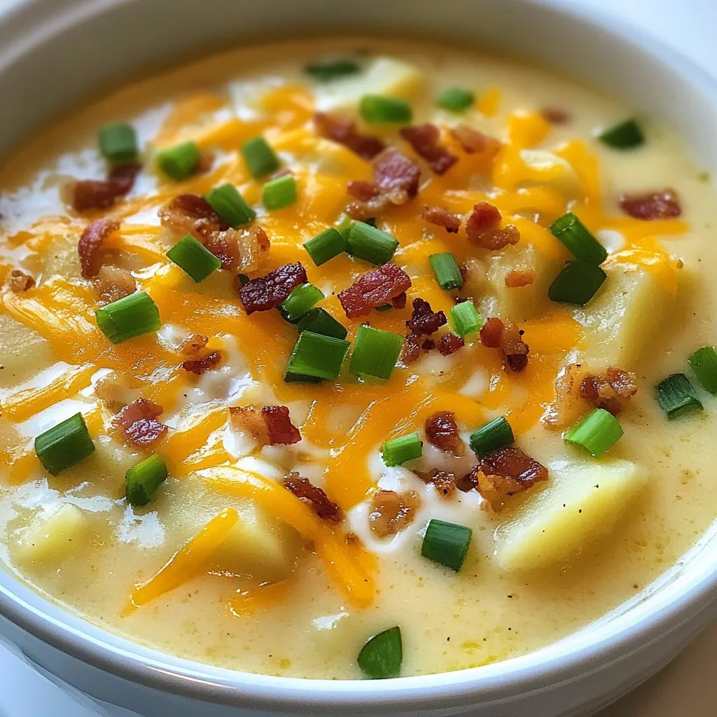 Cream cheese and sour cream make the soup creamy and rich. Shredded cheddar cheese brings that classic cheesy taste. If you enjoy bacon, add it for extra flavor. Green onions add a fresh touch at the end.