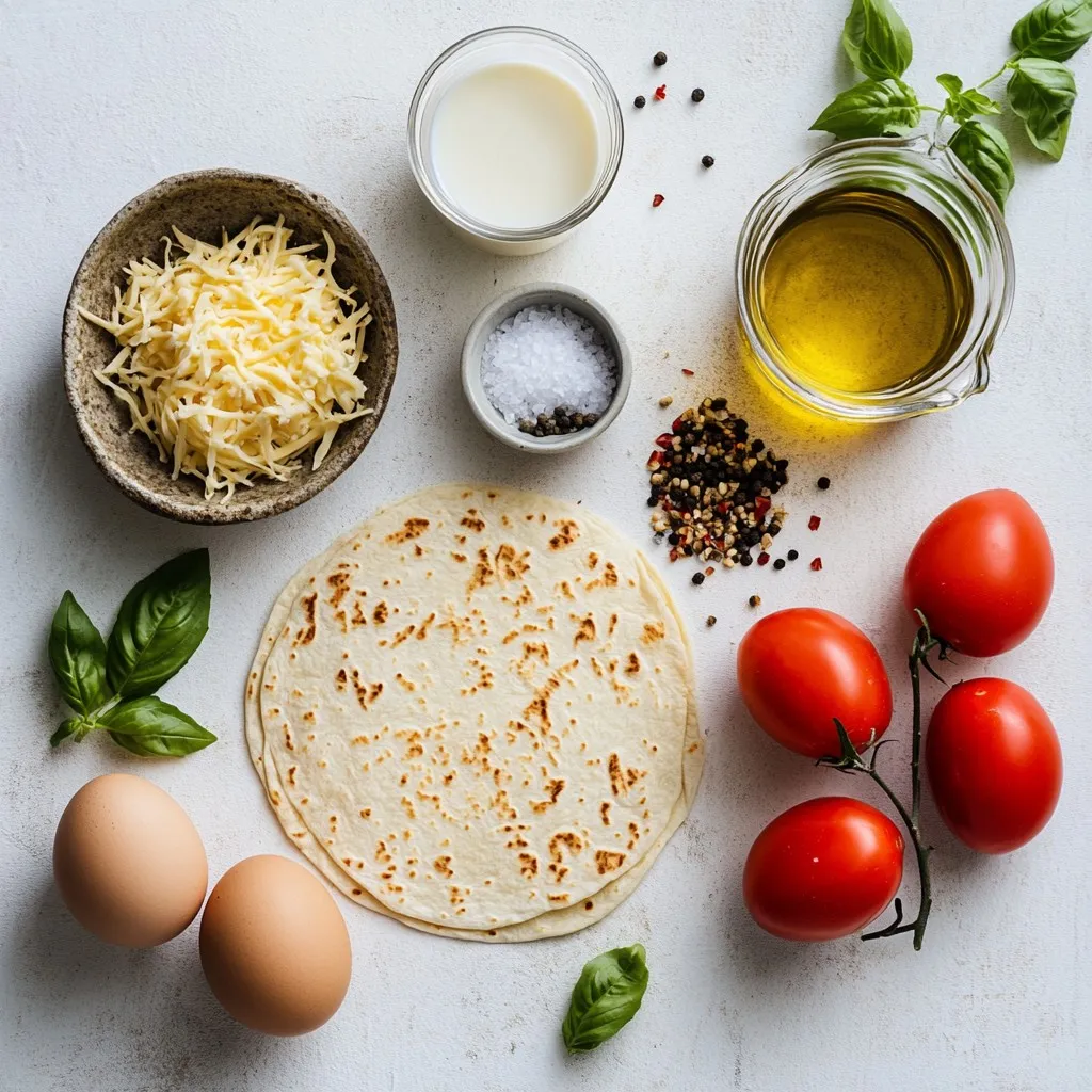 To make the Easy Egg Cheese Tomato Breakfast Wrap, gather these key ingredients:
