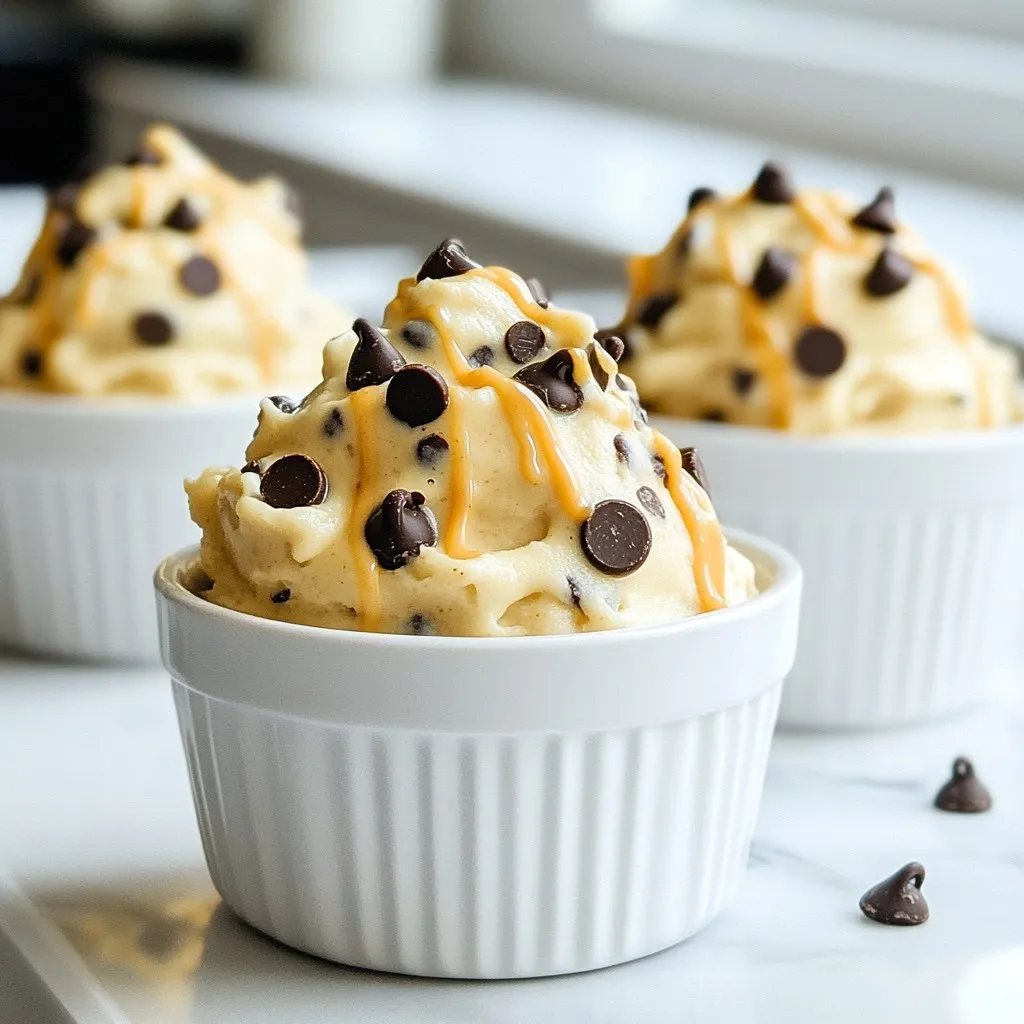 Serve your cookie dough in small bowls or ramekins. To make it look extra special, drizzle some almond butter on top. You can also sprinkle some extra chocolate chips for a fun finish.