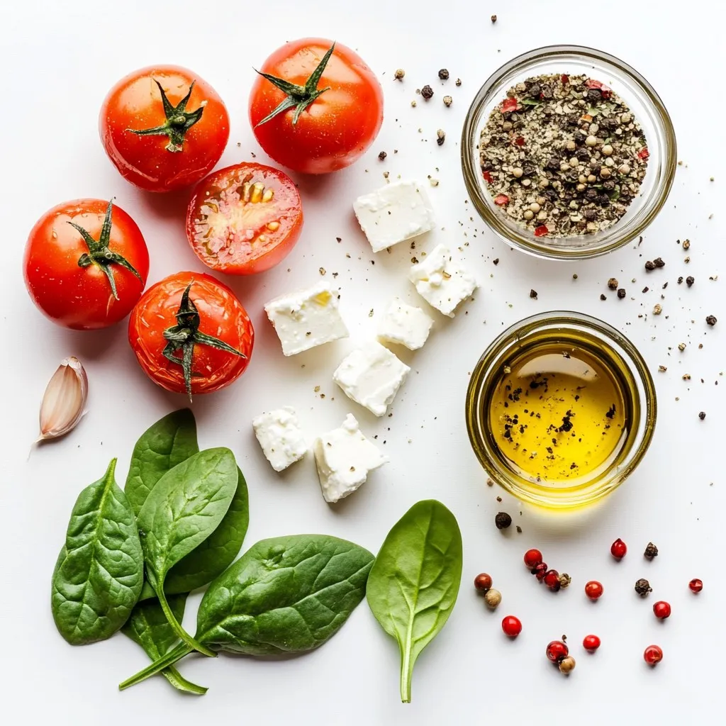 For this dish, I use penne pasta because its shape holds sauce well. Cherry tomatoes add sweetness and color. The feta cheese gives a creamy, tangy flavor that melts nicely. Baby spinach adds a fresh touch and brightens the dish.