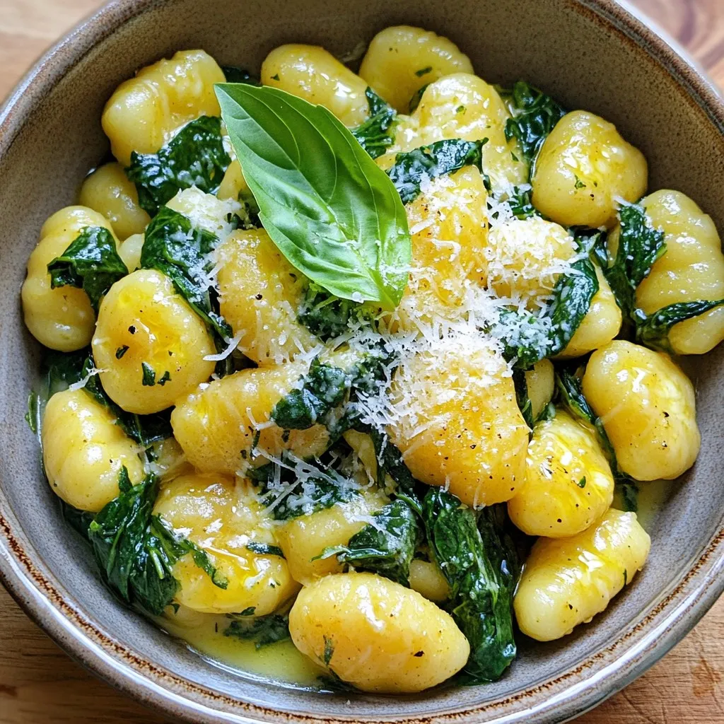 Each of these ingredients plays a key role in creating a delightful meal. You will enjoy the taste of garlic butter, the softness of gnocchi, and the freshness of spinach all in one bowl.
