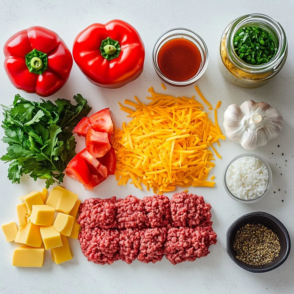 The heart of this dish starts with ground beef. I like to use a pound for a rich flavor. Next is long-grain rice, which cooks well in the casserole. Diced tomatoes add moisture and a slight tang, while cream of mushroom soup gives a creamy texture. Finally, beef broth enhances the flavor and helps cook the rice evenly.