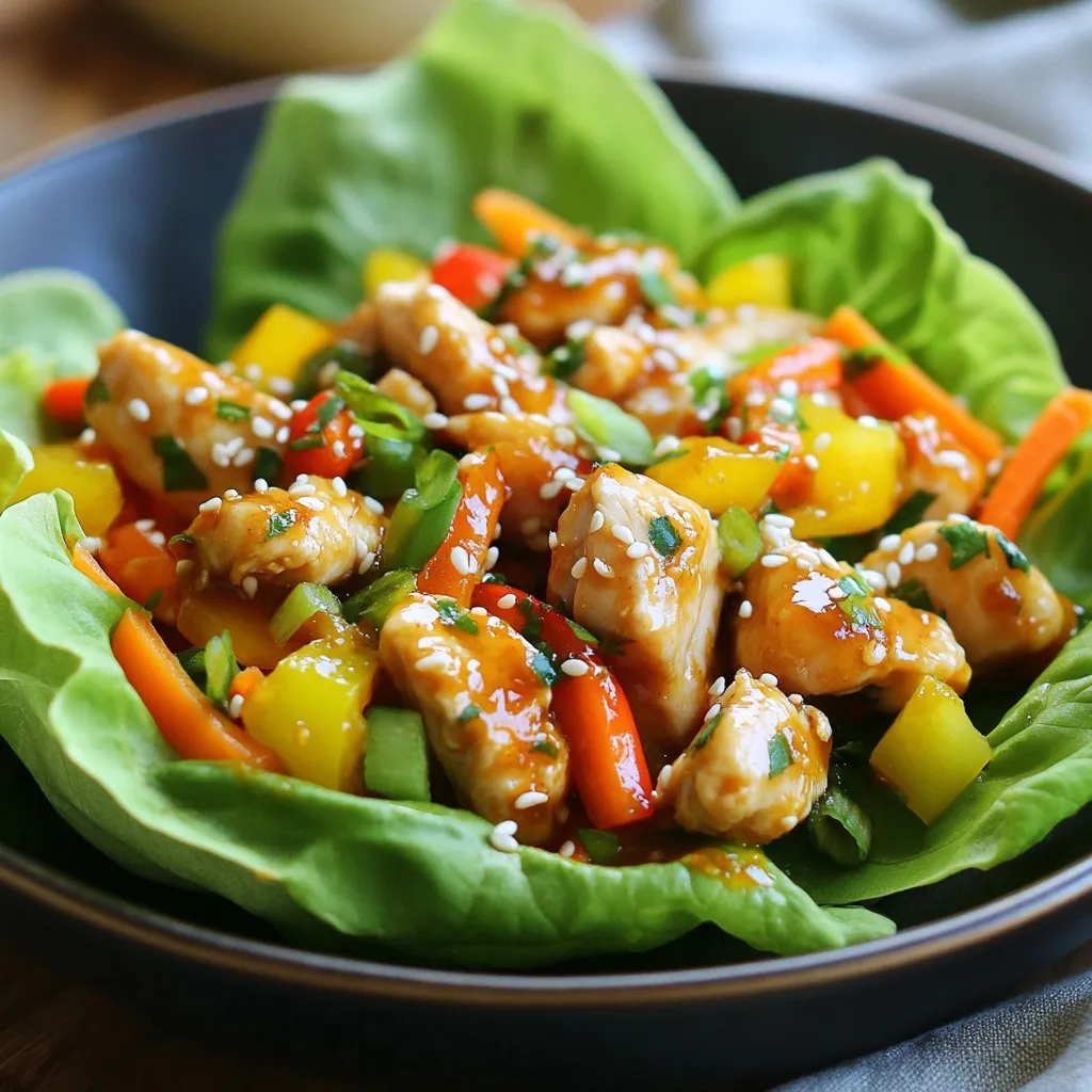 Delicious and spicy chicken wrapped in fresh lettuce leaves, perfect for a light meal.