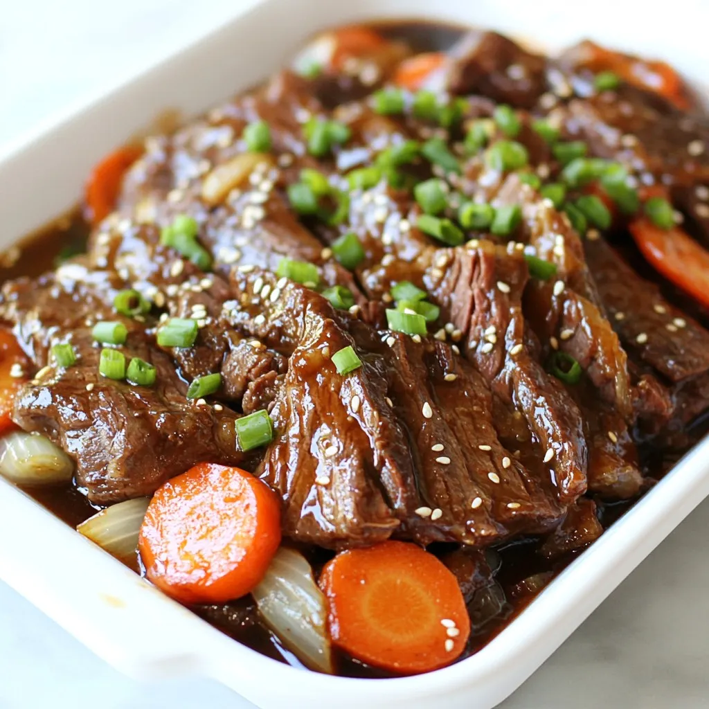 A flavorful and tender beef chuck roast marinated in a savory Korean-style sauce, slow-cooked with vegetables.