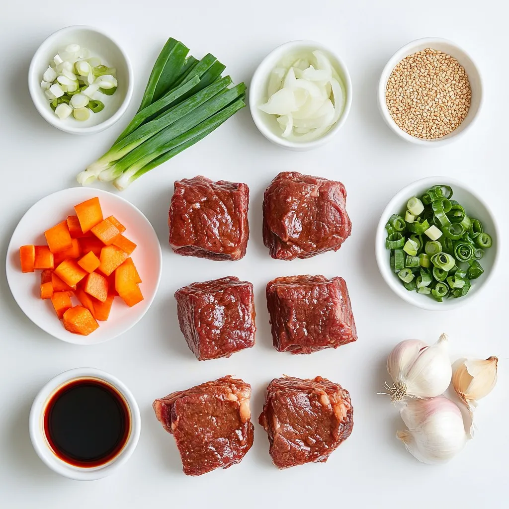 For this Korean pot roast, I use a few key ingredients. The beef chuck roast gives the dish its rich flavor. Soy sauce adds depth, while brown sugar balances the saltiness. Sesame oil brings a nutty taste, and beef broth keeps the meat moist. Water helps combine everything.