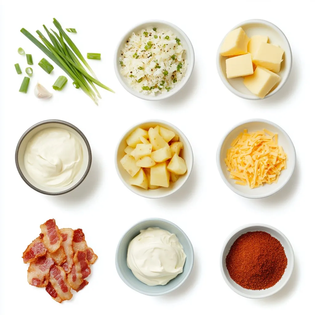 To make a rich and creamy loaded baked potato soup, gather these main ingredients: