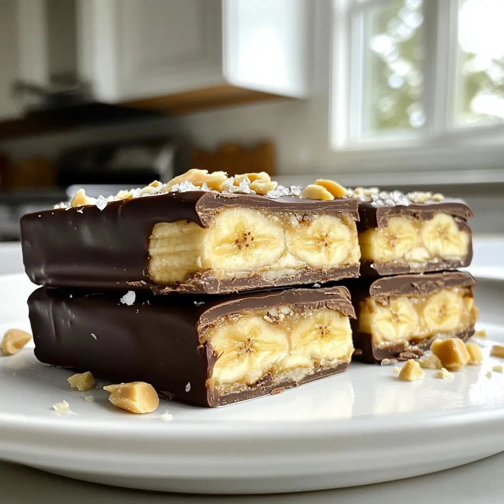Coat the Banana Snickers: Once the banana sandwiches are frozen, quickly dip each one into the melted chocolate, ensuring they are fully coated. Let excess chocolate drip off.