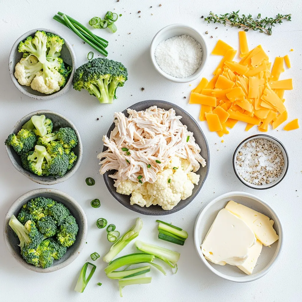 The heart of this casserole is the chicken and veggies. I love using cooked chicken because it saves time. The steamed cauliflower and broccoli add great texture and nutrients. They make the dish wholesome and filling.