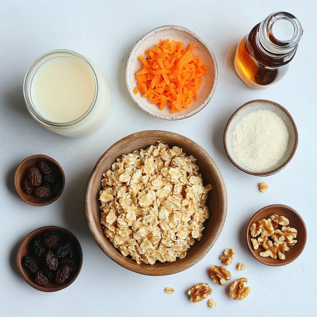 To make Maple Glazed Carrot Cake Oatmeal, you need a few simple items. Here’s the list of ingredients you will use: