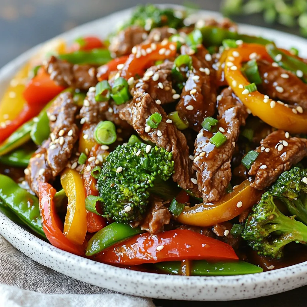 A quick and delicious stir fry featuring beef and fresh vegetables.