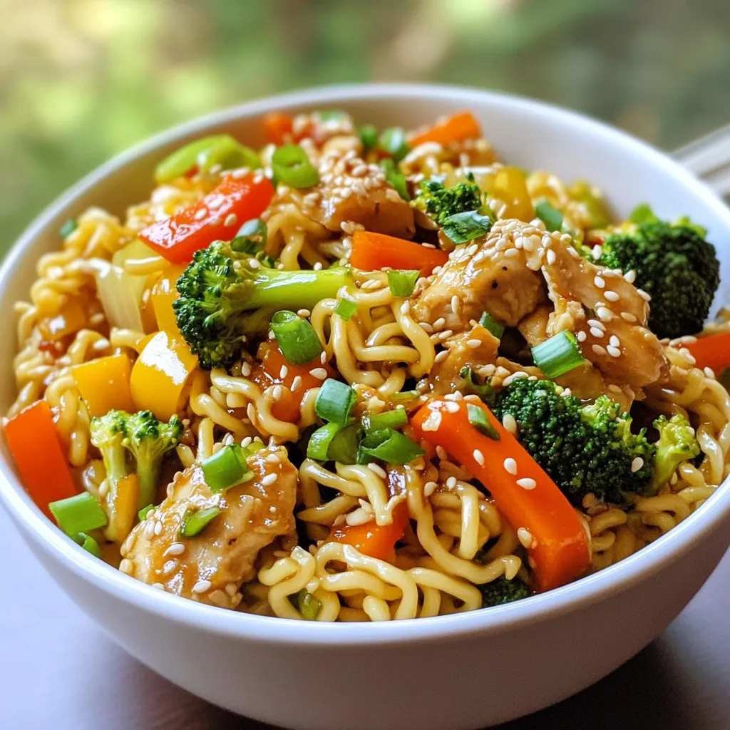 A quick and delicious stir fry featuring chicken and vegetables with ramen noodles.