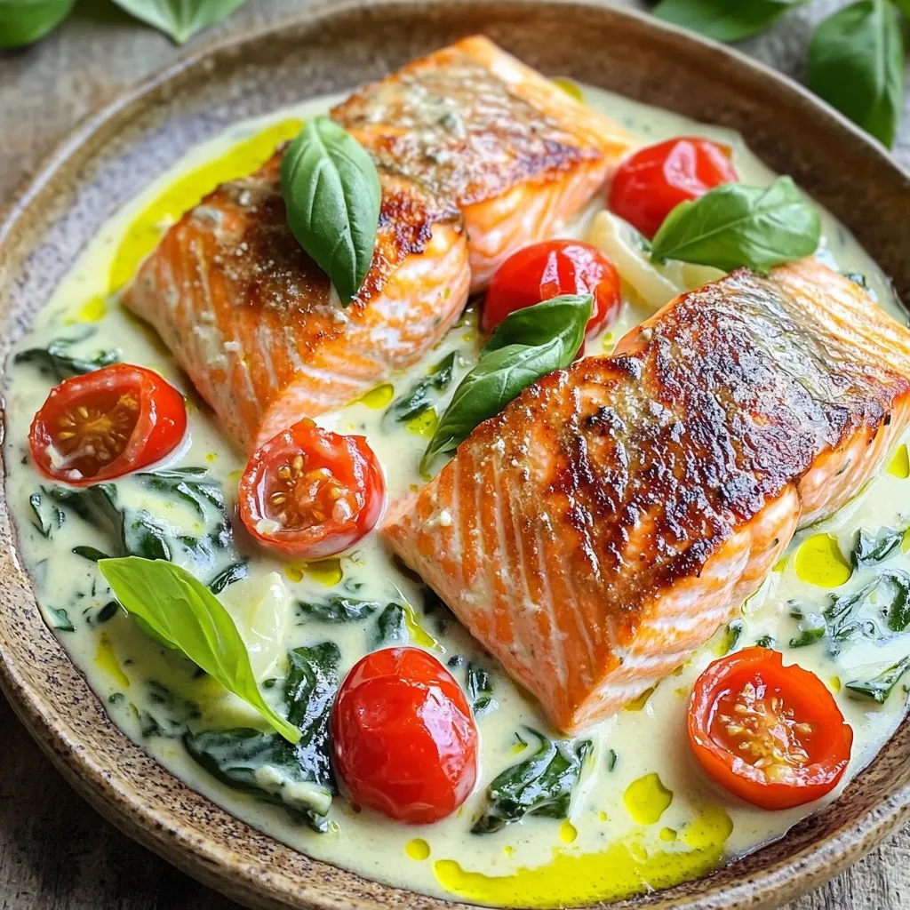 When it’s time to plate, I carefully lift the salmon from the skillet. I place it on a serving dish. I drizzle the remaining creamy sauce over the top. To finish, I garnish with fresh basil leaves and extra halved cherry tomatoes. This adds color and flavor. I love serving this dish over pasta or quinoa for a complete meal.
