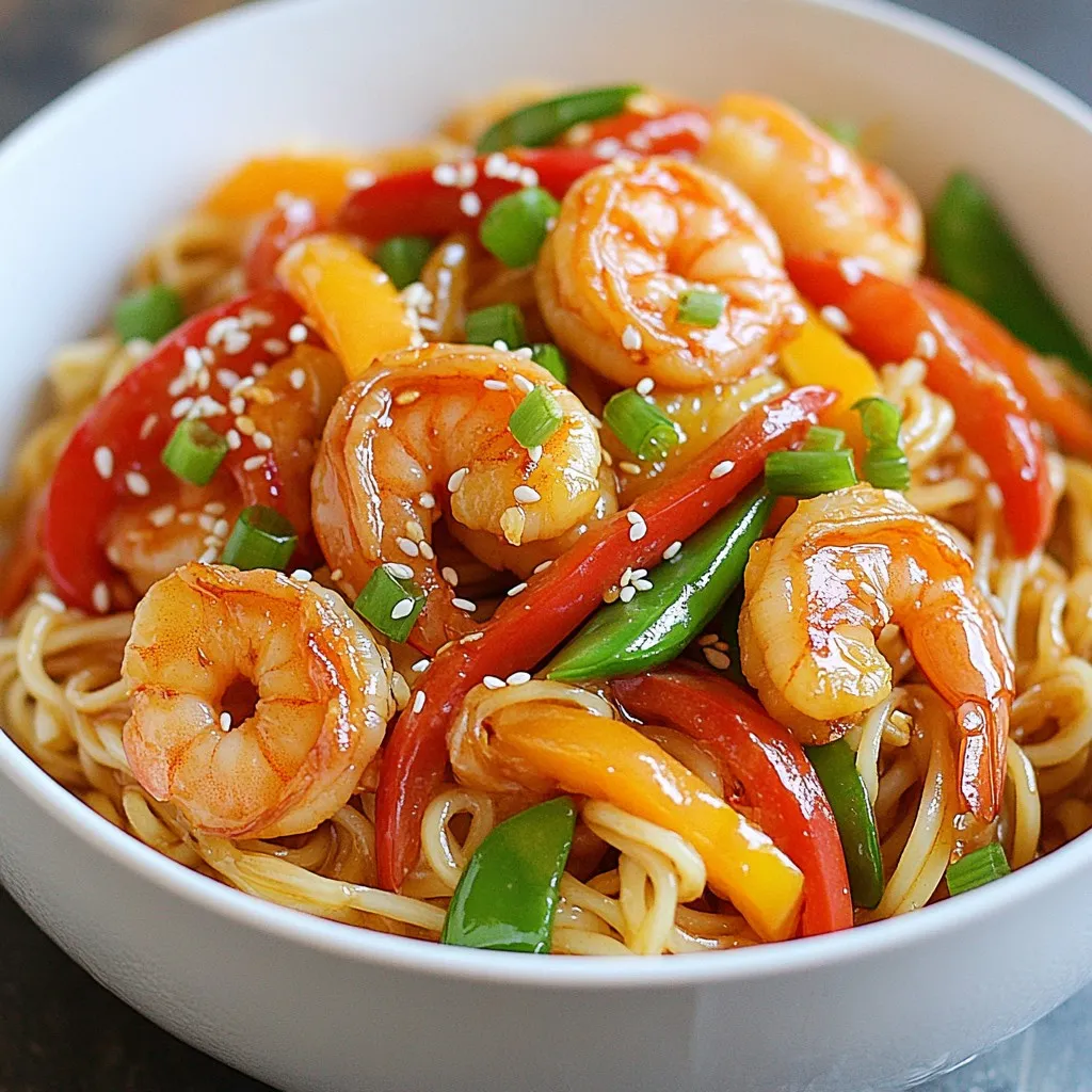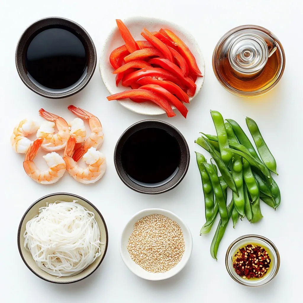 - 8 oz rice noodles - 1 lb shrimp, peeled and deveined - 2 tablespoons soy sauce - 1 tablespoon oyster sauce - 1 teaspoon sesame oil - 1 bell pepper, sliced - 1 cup snap peas - 2 green onions, chopped - 2 cloves garlic, minced - 1 tablespoon ginger, grated - 2 tablespoons vegetable oil - Salt and pepper to taste - Sesame seeds for garnish In this dish, rice noodles are the base. They cook quickly and soak up flavors well. Shrimp adds protein and a sweet taste. I love using fresh shrimp, but frozen works too. Bell peppers give a nice crunch and color. Snap peas add a fresh bite. Garlic and ginger bring warmth and aroma. These two are key in many Asian dishes. For sauces, soy sauce and oyster sauce create depth. The sesame oil gives a nutty finish. I always season with salt and pepper for balance. Lastly, sesame seeds are a fun garnish. They add texture and visual appeal. With these ingredients, you can make a quick, tasty meal. {{ingredient_image_1}} - First, boil water in a large pot. - Add 8 oz of rice noodles. - Cook until they are al dente, about 3-4 minutes. - Drain the noodles in a colander and set them aside. - In a large skillet, heat 2 tablespoons of vegetable oil over medium-high heat. - Add 2 cloves of minced garlic and 1 tablespoon of grated ginger. - Stir quickly for 30 seconds until it smells great. - Next, add 1 lb of peeled and deveined shrimp. - Cook for 2-3 minutes until the shrimp turn pink. - Remove the shrimp and set them aside. - In the same skillet, add 1 sliced bell pepper and 1 cup of snap peas. - Stir-fry for 3-4 minutes. - You want them to be tender-crisp, not mushy. - Return the shrimp to the skillet. - Add the cooked noodles, 2 tablespoons of soy sauce, 1 tablespoon of oyster sauce, and 1 teaspoon of sesame oil. - Toss everything together and stir-fry for another 2 minutes to heat through. - Season with salt and pepper to taste. - Serve hot and enjoy your meal! To get juicy shrimp, watch the cooking time closely. Shrimp cook quickly, about 2 to 3 minutes until they turn pink. If you overcook them, they become rubbery. To avoid this, remove the shrimp from the pan as soon as they are done. Choose shrimp based on size. Large shrimp, like 16-20 per pound, work great for this dish. They stay tender and juicy. Smaller shrimp may cook too fast and lose flavor. To add a kick, try red pepper flakes. Just a pinch can make a big difference. You can also play with sauces for more flavor. Instead of oyster sauce, use hoisin or teriyaki sauce for a twist. Each sauce will give your dish a new taste. Serve your stir-fry in deep bowls. This makes it easy to eat and looks great. Garnish with sesame seeds and green onions for a nice finish. Bright colors make the dish pop, so add some lime wedges on the side. The fresh citrus will enhance the dish's flavor and appeal. Pro Tips Prep Ingredients Ahead: Having all your ingredients prepped and ready to go will ensure a smooth cooking process, allowing you to focus on stir-frying without interruption. Use High Heat: Stir-frying requires high heat to achieve that perfect sear and flavor. Make sure your pan is hot enough before adding the ingredients. Don’t Overcrowd the Pan: Cooking in batches if necessary will help maintain high heat and prevent steaming, ensuring your ingredients stay crisp and flavorful. Experiment with Veggies: Feel free to mix and match your favorite vegetables in this dish. Broccoli, carrots, or bok choy make great additions for variety and color. {{image_2}} You can switch the shrimp for chicken or tofu. Chicken adds a hearty flavor, while tofu gives a great vegetarian option. For chicken, use boneless thighs or breasts. Cut them into small pieces and cook them until golden. For tofu, choose firm tofu, and press it to remove moisture. Sauté it until crispy for that perfect bite. Both options keep the dish tasty and satisfying. If you want a change, try different noodle types like udon or soba. Udon noodles are thick and chewy, while soba are made from buckwheat and have a nutty taste. These options add unique flavors and textures to your meal. For gluten-free choices, look for rice noodles or quinoa noodles. They work well and keep the dish light and fresh. Get creative with your veggies! Use seasonal options for added flavor. You can toss in broccoli, carrots, or bell peppers for crunch. Snap peas add a sweet bite, but you can swap them out based on what you have. Peas are quick and easy, while carrots add a nice color. Feel free to mix and match your favorite vegetables to make this dish your own! To keep your Minute Shrimp Stir Fry Noodles fresh, start by cooling them down. Let them sit at room temperature for about 30 minutes. This helps stop any bacteria from growing. Once cooled, place the noodles into an airtight container. Make sure to seal it tightly. This will keep moisture out and keep your dish tasty. - Use clear containers so you can see what's inside. - Label the container with the date to track freshness. When reheating your stir fry, you want to keep it just as delicious. The stovetop method is best. Heat a little oil in a pan over medium heat. Add the noodles and stir until warm. This keeps the noodles from getting soggy. If you use a microwave, place the noodles in a bowl. Cover it with a damp paper towel. Heat them in short bursts, stirring in between. This helps keep the texture nice and prevents drying out. Enjoy your meal again without losing flavor! Yes, you can make this dish ahead of time. Here are some tips for pre-preparation: - Cook the noodles: You can cook the rice noodles and store them in the fridge. - Prep the shrimp: Clean and devein the shrimp a day in advance for quick cooking. - Chop the veggies: Slice the bell pepper and snap peas. Store them in a sealed bag. - Mix sauces: Combine soy sauce, oyster sauce, and sesame oil in a small bowl. Prepare all these items a few hours ahead. When you’re ready to eat, just stir-fry everything quickly. To store shrimp stir fry noodl