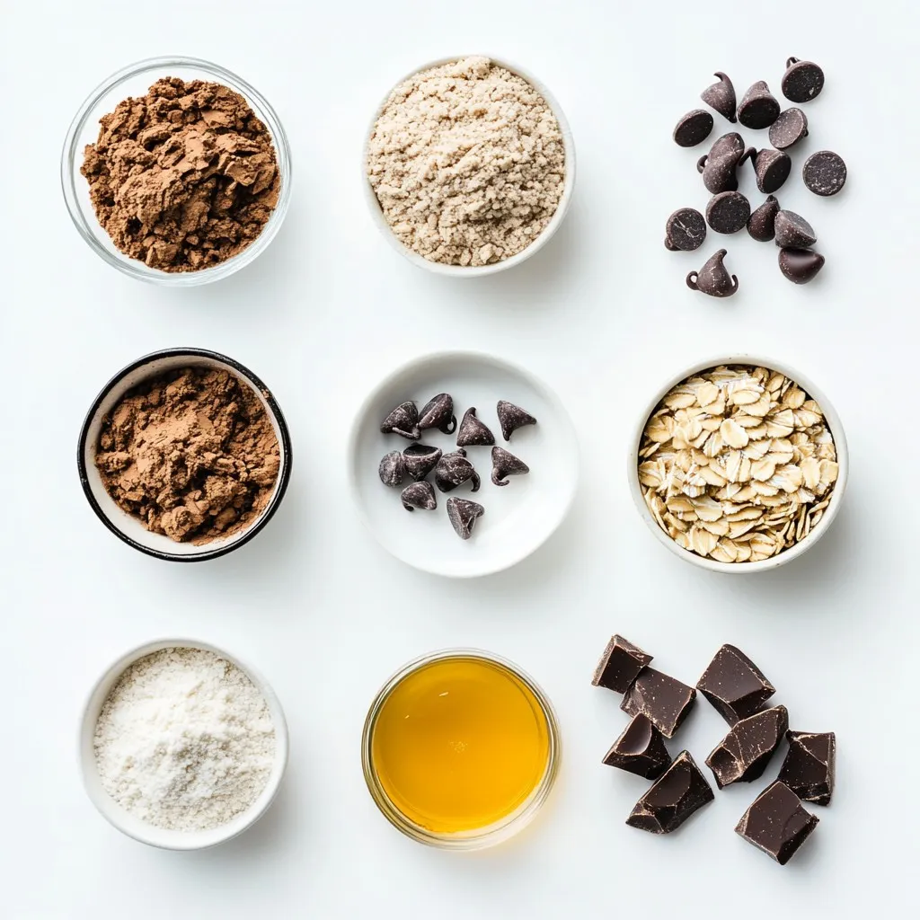 To make no bake chocolate peanut butter bars, you need simple ingredients. First, gather your dry ingredients. Almond flour and rolled oats give a strong base. Cocoa powder adds a rich chocolate taste. Salt helps balance the sweetness.