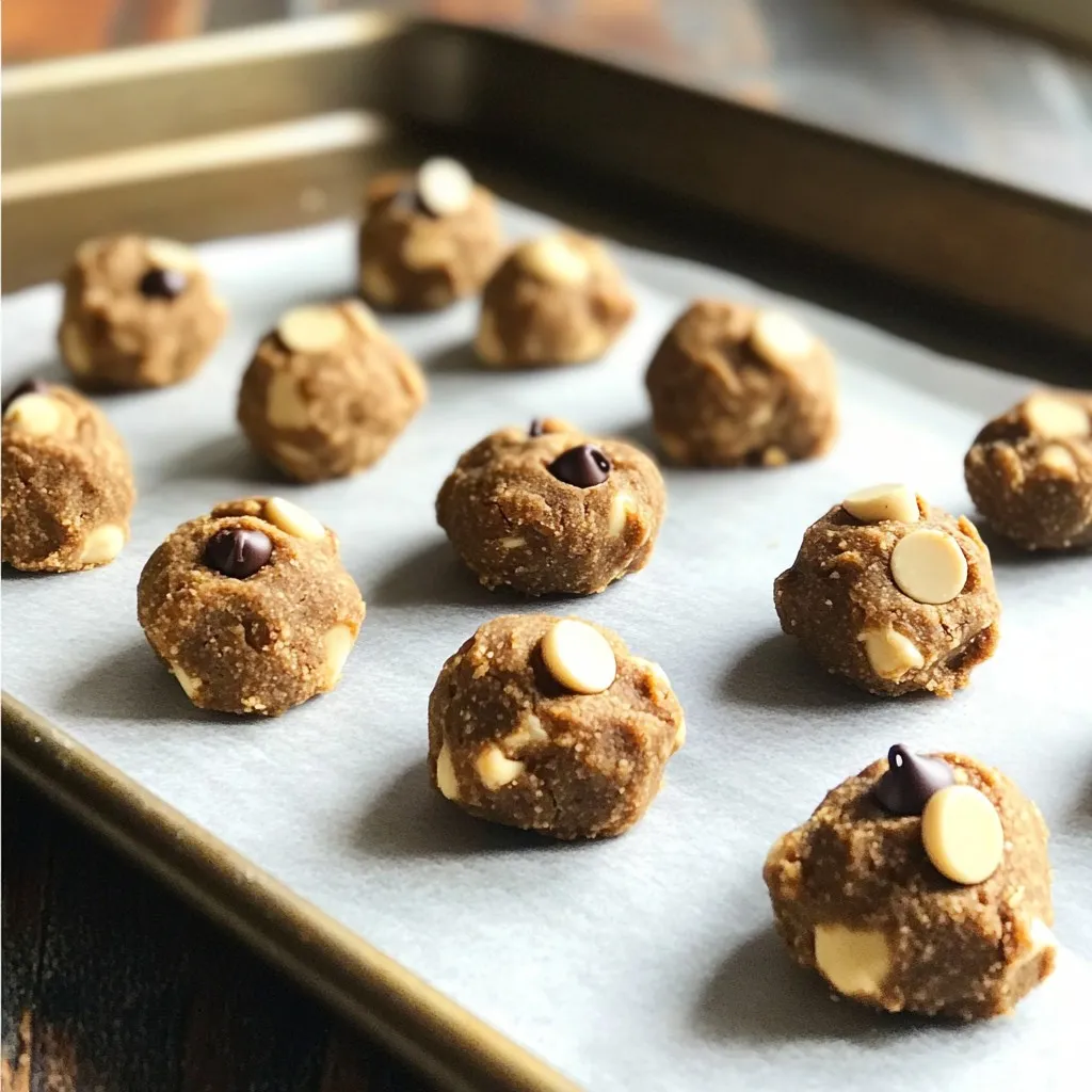 Take small portions of dough and roll them into 1-inch balls. Use your hands for this part. Place each ball on a parchment-lined baking sheet. This makes it easy to remove the bites later. After shaping all the balls, put the baking sheet in the refrigerator. Let them chill for at least 30 minutes. This helps them firm up nicely. Enjoy these bites cold or at room temperature for the best flavor!