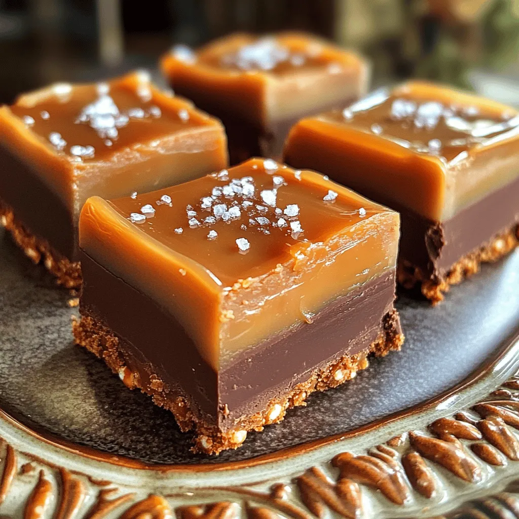 - Presentation Tips: To create an eye-catching presentation, place the fudge squares on a decorative platter. Drizzle additional caramel sauce over the top just before serving and sprinkle with a touch of sea salt for an appealing finish.