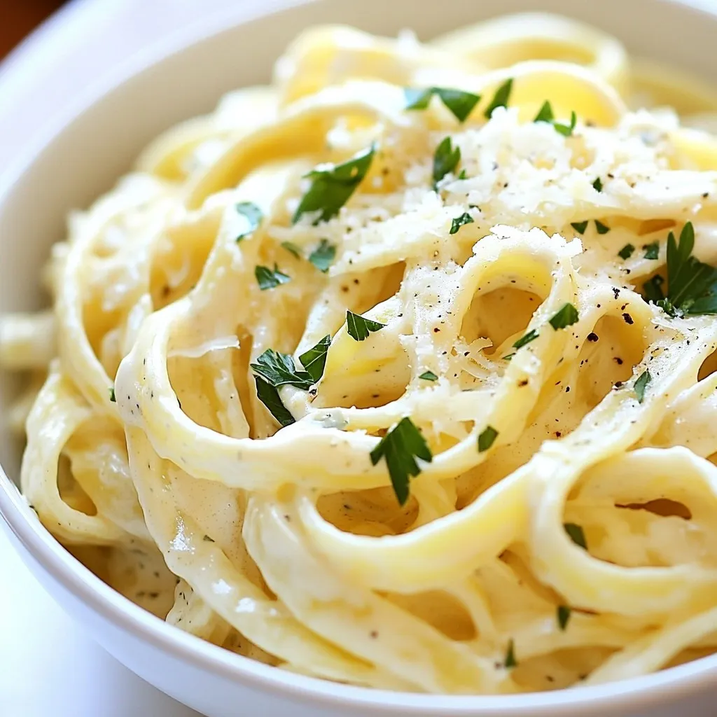 These ingredients create a rich and creamy dish that is simple yet full of flavor. The garlic adds a wonderful aroma, while the Parmesan cheese makes it extra comforting. This pasta is a great way to enjoy a tasty meal without a lot of fuss. Don’t forget the fresh parsley for a pop of color and a hint of freshness! If you want to brighten the dish even more, add a bit of lemon zest. It really makes a difference.