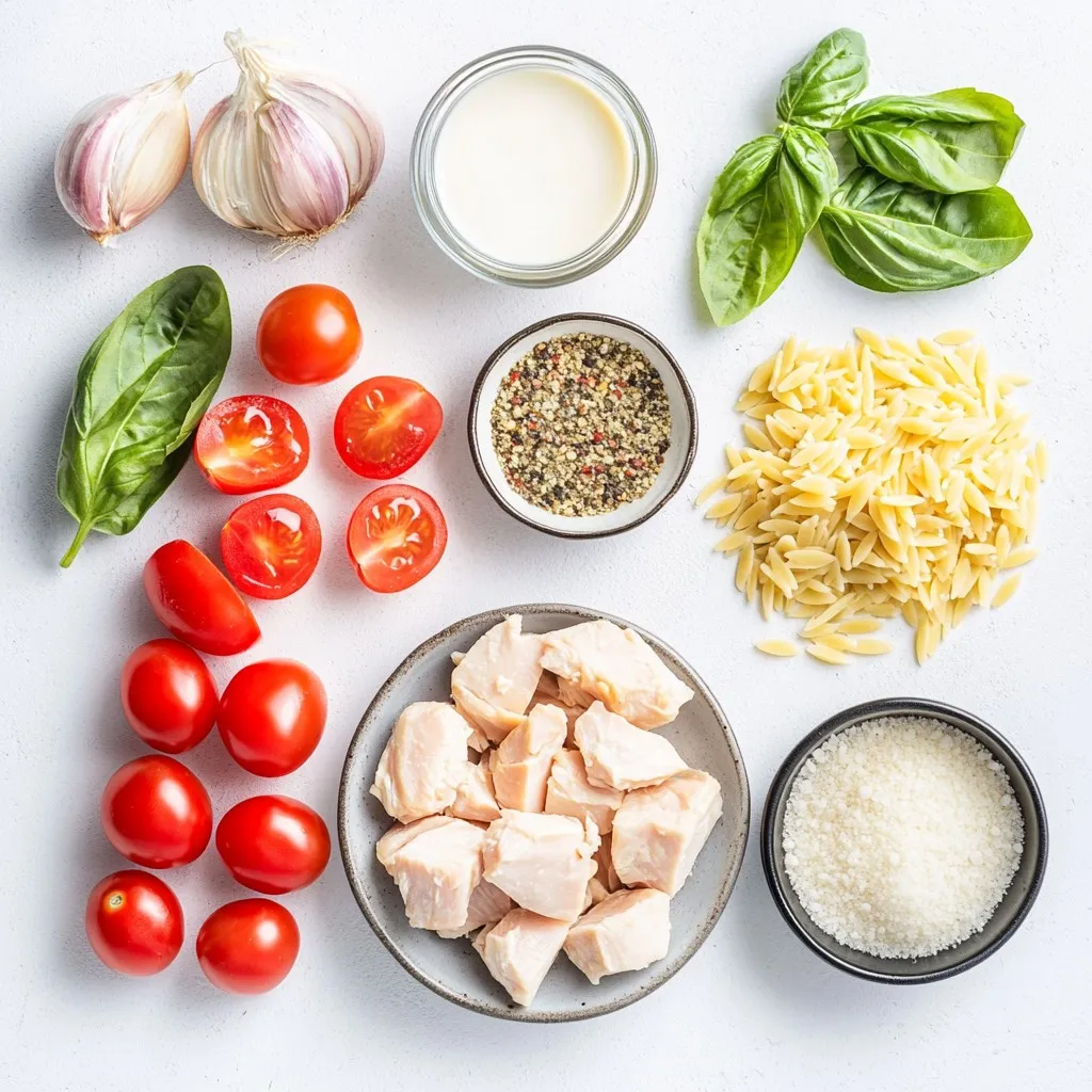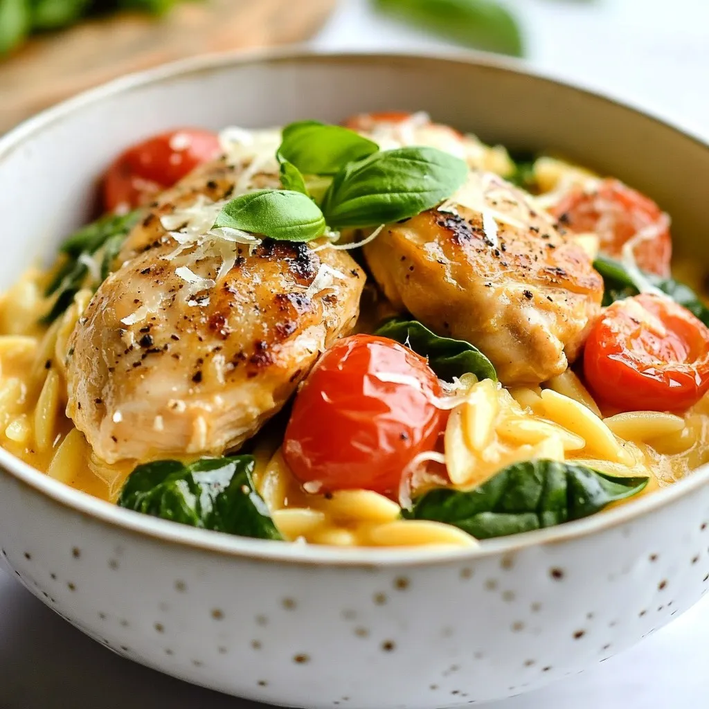 A delicious one-pot meal featuring chicken, orzo pasta, and a creamy Tuscan-inspired sauce.
