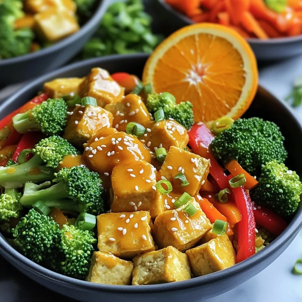 - 14 oz firm tofu, pressed and cubed - 2 cups fresh broccoli florets - 1 red bell pepper, sliced into thin strips - 1 carrot, julienned - 4 green onions, finely chopped - 1 tablespoon sesame seeds, toasted These main ingredients create a colorful and healthy base for your orange tofu bowls. Firm tofu adds protein and texture. Fresh broccoli, red bell pepper, and carrot bring crunch and nutrients. The green onions and sesame seeds provide an extra pop of flavor and visual appeal. - 1/2 cup freshly squeezed orange juice - Zest of 1 orange (about 1 tablespoon) - 2 tablespoons low-sodium soy sauce - 1 tablespoon pure maple syrup - 1 tablespoon rice vinegar - 1 teaspoon fresh ginger, grated - 1 garlic clove, minced - Pinch of red pepper flakes (optional, for added heat) The orange sauce brings a burst of flavor. Freshly squeezed orange juice and zest give a bright taste. Soy sauce adds saltiness, while maple syrup balances with sweetness. Rice vinegar adds tang. Garlic and ginger enhance the sauce's depth. The red pepper flakes can spice things up if you like heat. This sauce ties everything together for a delicious meal. To start, combine all the sauce ingredients. You need: - 1/2 cup freshly squeezed orange juice - Zest of 1 orange (about 1 tablespoon) - 2 tablespoons low-sodium soy sauce - 1 tablespoon pure maple syrup - 1 tablespoon rice vinegar - 1 teaspoon fresh ginger, grated - 1 garlic clove, minced - Pinch of red pepper flakes (optional) Whisk these together until smooth. Letting the sauce sit for a bit helps the flavors mix well. This step adds depth to the taste. Next, it's time to cook the tofu. First, coat the cubed tofu in cornstarch. This helps it get crispy. You want each piece to have an even layer. Heat a large non-stick skillet over medium-high heat. Add 2 tablespoons of vegetable oil. When the oil shines, add the coated tofu. Cook it for about 5-7 minutes. Turn the tofu often to make sure it gets golden brown on all sides. The right texture is key for a great bite. Once the tofu is crispy, take it out and set it aside. In the same skillet, add your fresh vegetables. Use: - 2 cups fresh broccoli florets - 1 red bell pepper, sliced into thin strips - 1 carrot, julienned Stir-fry these for about 5 minutes. You want them to stay bright and crunchy. This keeps the dish fresh and colorful. Now, return the crispy tofu to the skillet with the veggies. Pour the orange sauce over everything. Stir gently to coat the tofu and vegetables. Let it simmer for 2-3 minutes. This allows the sauce to heat through and thicken slightly. You want every bite to be full of flavor. For serving, choose your grains. Fluffy white rice or hearty quinoa work well. Spoon generous portions of the orange tofu and veggies over the grains. For a nice touch, garnish with: - Finely chopped green onions - A sprinkle of toasted sesame seeds This adds texture and a pop of color. For added flair, serve in deep plates or shallow bowls. A slice of fresh orange on the rim makes it look even better. Tofu holds a lot of water. Pressing it helps make it firm and crispy. Here are some simple steps: - Wrap the tofu in a clean kitchen towel. - Place a heavy object on top, like a cast-iron pan or books. - Let it sit for 15 to 30 minutes. This process draws out excess moisture. Pressing tofu gives it a better texture. Firm tofu holds up well in stir-fries. To get the best orange taste, use both zest and juice. Here’s how to balance them: - Use 1 tablespoon of zest from one orange. - Combine it with 1/2 cup of fresh juice. You can also add spices for extra flavor: - Try a pinch of cinnamon for warmth. - Add more red pepper flakes for heat. These tweaks make the dish feel special and unique. A non-stick skillet is best for cooking tofu. It ensures even cooking and makes cleanup easy. Here’s what to look for: - Skillet size: Choose one that fits all the tofu and veggies. - Material: Go for a heavy bottom to avoid hot spots. For ease in the kitchen, use these tools: - A spatula for flipping tofu and stirring veggies. - A mixing bowl for the sauce, making it easy to whisk ingredients. These tools help you cook with more joy and less fuss. {{image_4}} You can easily boost the nutrition in your orange tofu bowls. Try adding different vegetables like bell peppers or snap peas. These will bring color and crunch. You can also mix in leafy greens for extra vitamins. If you want more protein, consider using tempeh or chicken instead of tofu. Both options work well with the orange sauce. If you love heat, make your bowls spicy! Add more red pepper flakes to the orange sauce. Start with a small amount and taste it. You can always add more if you want. Adjust the sweetness too. If it's too sweet for you, add a little more soy sauce or vinegar. This balance will make each bite exciting and full of flavor. For those who need gluten-free meals, it’s easy to adapt this recipe. Use tamari instead of soy sauce. Tamari has a similar taste but is gluten-free. You can also switch your grains. Instead of regular rice, try quinoa or cauliflower rice. These swaps keep the dish tasty while meeting gluten-free needs. To keep your orange tofu bowls fresh, follow these tips. First, let the dish cool down to room temperature. This helps prevent moisture from building up. Next, use airtight containers for storage. Glass containers work well and do not stain. I prefer to separate the tofu and vegetables if you have extra sauce. This keeps everything crispy. Store in the fridge for up to three days. You can freeze orange tofu bowls for later. To do this, pack them in freezer-safe containers. Leave a little space at the top for expansion. Label the containers with the date. When you’re ready to enjoy, take them out of the freezer. Thaw in the fridge overnight for best results. Reheat gently in a skillet over medium heat. Add a splash of water or extra sauce to keep it moist. This way, your meal tastes just as great as when it was fresh! Yes, you can us
