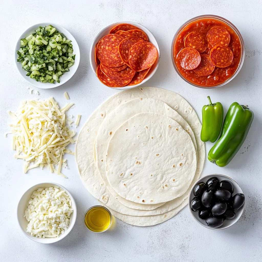 Creating Pepperoni Pizzadillas is simple and fun. You need just a few basic ingredients to make them tasty. Start with the flour tortillas; they give a nice base. The cheese is key for that gooey texture. I like using mozzarella because it melts beautifully.