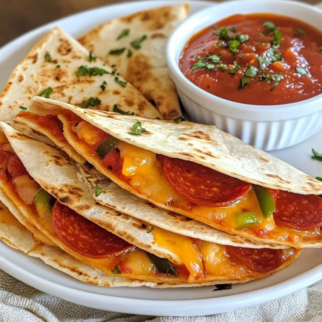 Serve the pizzadilla with extra pizza sauce on the side. This adds a tasty dip that makes each bite even better.