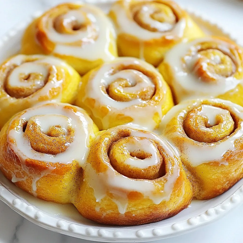 Deliciously soft and fluffy cinnamon rolls infused with pumpkin and warm spices, topped with a creamy glaze.