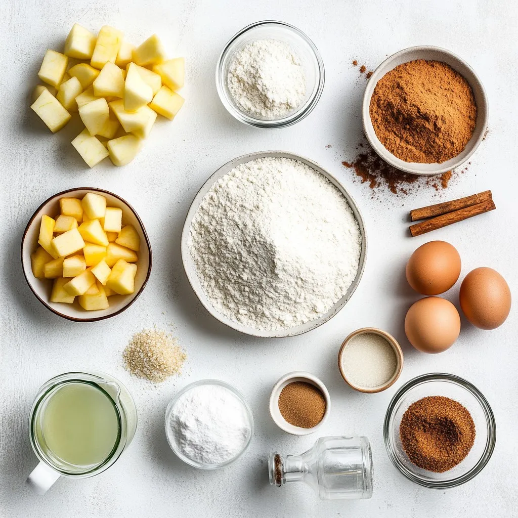 First, gather your ingredients. You will need two cups of flour, one tablespoon of baking powder, and half a teaspoon of baking soda. Also, get one teaspoon of cinnamon, a quarter teaspoon of nutmeg, and half a teaspoon of salt. Next, grab three-quarters of a cup of brown sugar, one cup of buttermilk, two large eggs, and one teaspoon of vanilla extract. Finally, prepare one cup of peeled, cored, and diced apples, preferably Granny Smith.