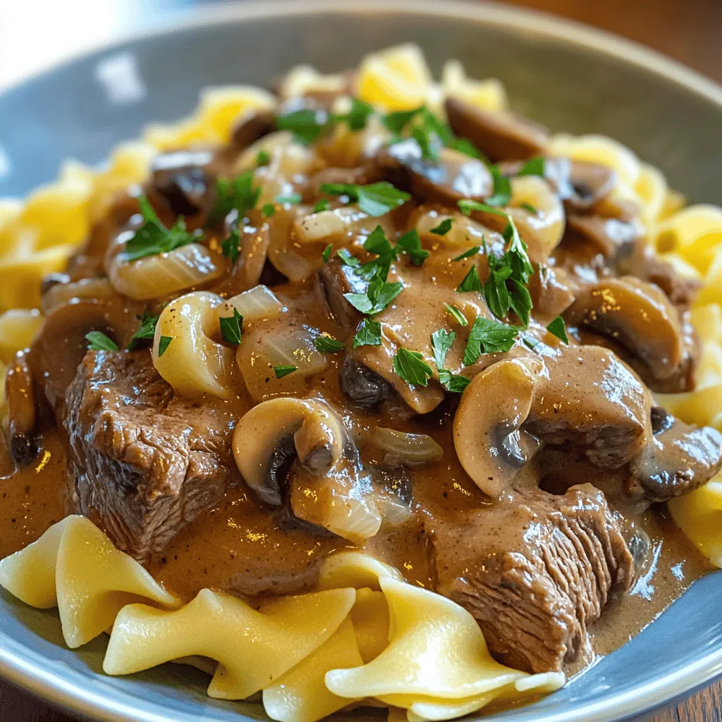 You can switch up the beef in your stroganoff. Try chicken or pork for lighter options. Both meats cook well in a slow cooker and soak up flavor. For a vegetarian twist, use mushrooms as the main protein. Portobello or cremini mushrooms add a rich taste. They give you that hearty feel without the meat.