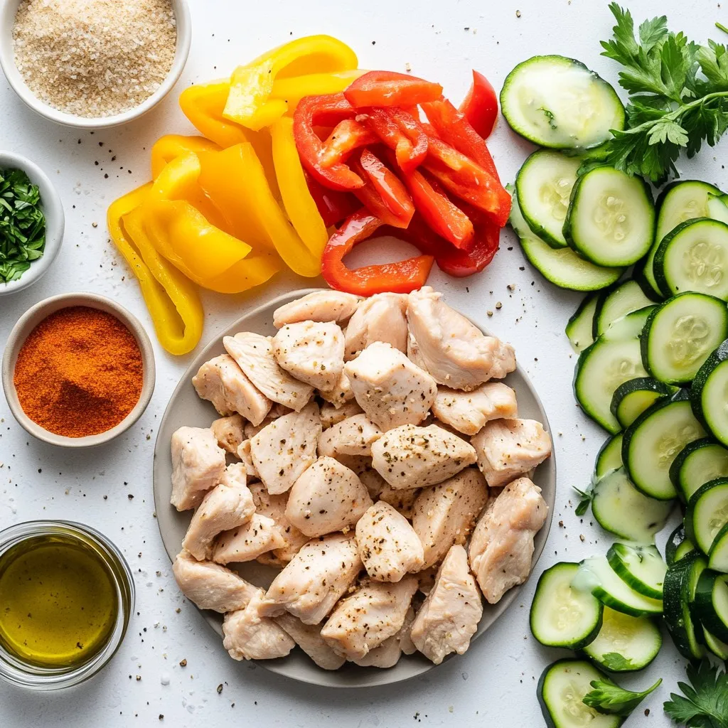 The main ingredients make this dish shine. First, we use chicken breasts. Their lean protein cooks tender and juicy. Next, bell peppers and zucchini add color and crunch. The whole wheat pitas give a nice, hearty base.